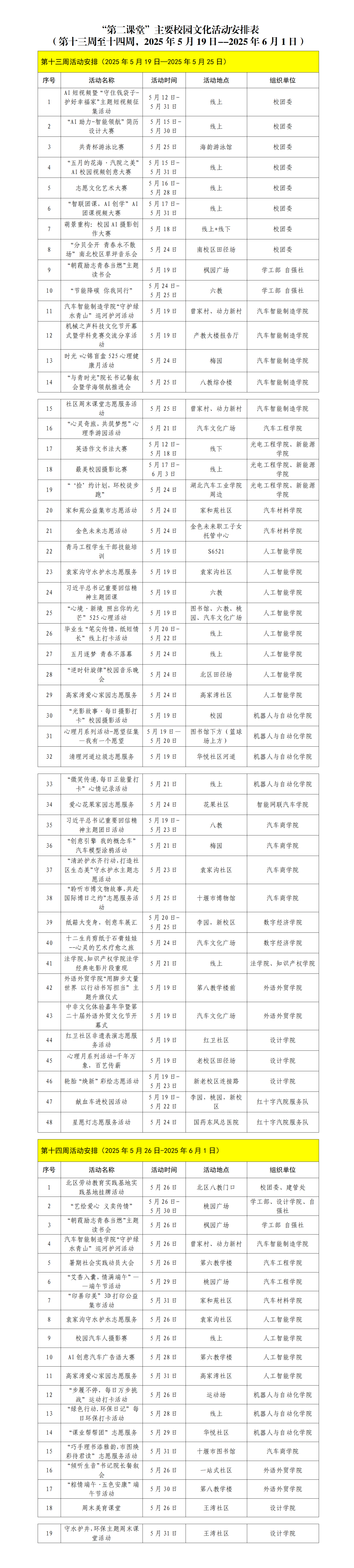 第二课堂”主要校园文化活动安排表(第十三周至十四周)