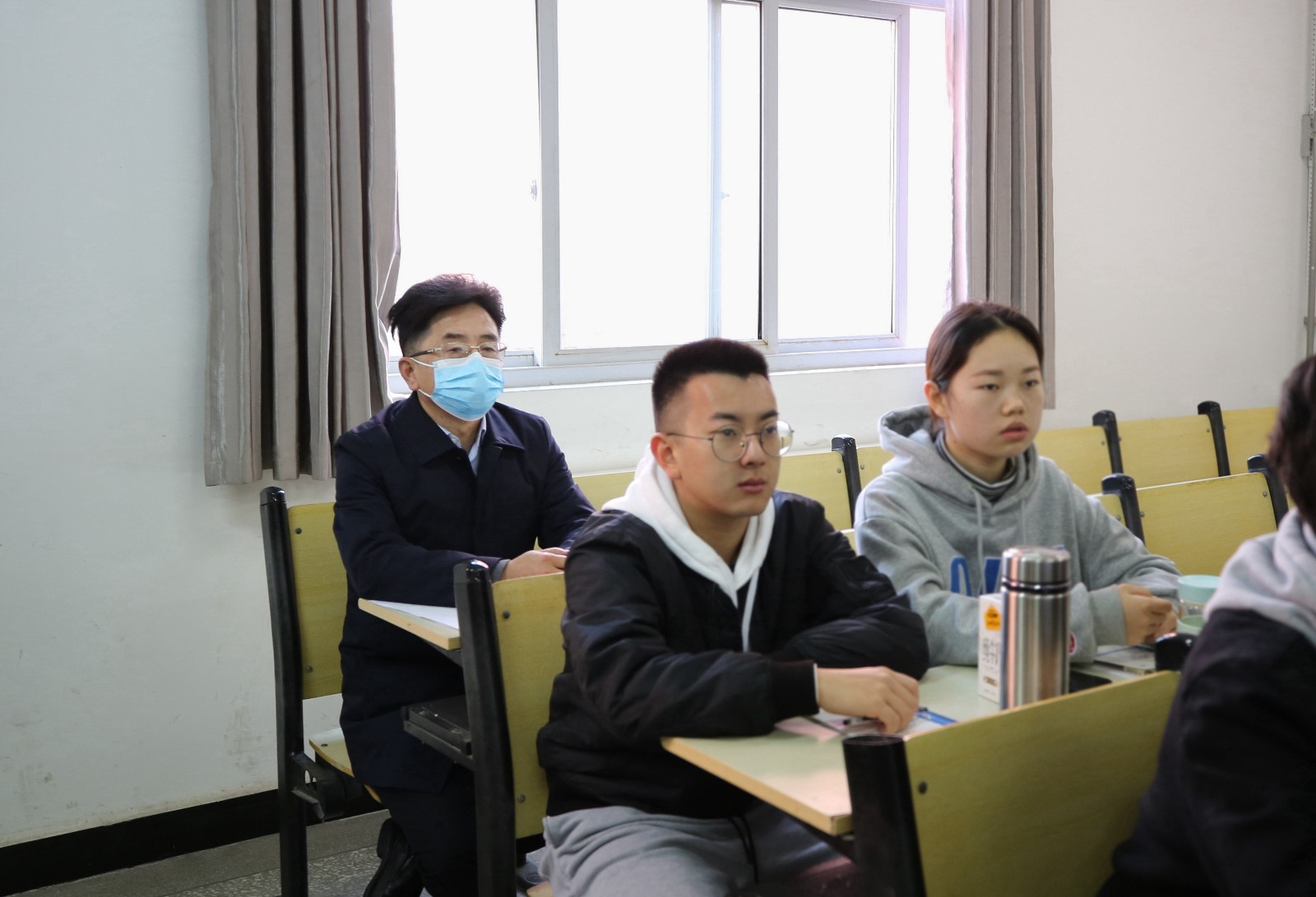 上课铃响,张校长先到教学楼多媒体总控室查看多媒体管理、音响话筒等教学基本设施的配置、使用情况,并亲自试用话筒感受声音效果。此后逐层巡视查看教师上课和学生的学习、出勤的情况。在6212教室机制202班正在召开班会,张校长亲切地询问班会内容并勉励同学们做好学业规划,学好文化知识,早日成才。在6504研究生授课教室,张校长与任课教师交流研究生的学习情况,询问研究生的生活状况和学业安排,鼓励他们提高学术造诣。张校长还查看了教师休息室(母婴室)、开水房、卫生间等配套设施和卫生情况,他要求校园建设与管理处要开通网上保修服务,及时响应听取师生反馈意见,多为师生着想,确保教学场所环境干净、整洁,不断改善保障条件,为师生做好服务保障,提升师生满意度。9点整,张校长又走入课堂,与学生同桌聆听学校省级教学名师任爱华老师;10点进入思政课教室聆听白满仓老师的授课。课后分别与任课老师就教学设计和学生学习效果进行交流。