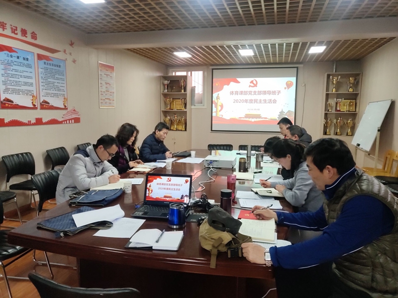 本网讯(文/肖鹤)3月10日下午,体育课部党支部在部会议室召开2020年度民主生活会,全体委员参加了会议,校纪委书记林雪荣、副书记韩晓、组织部肖越到会进行督导。会议由党支部书记熊玲主持。