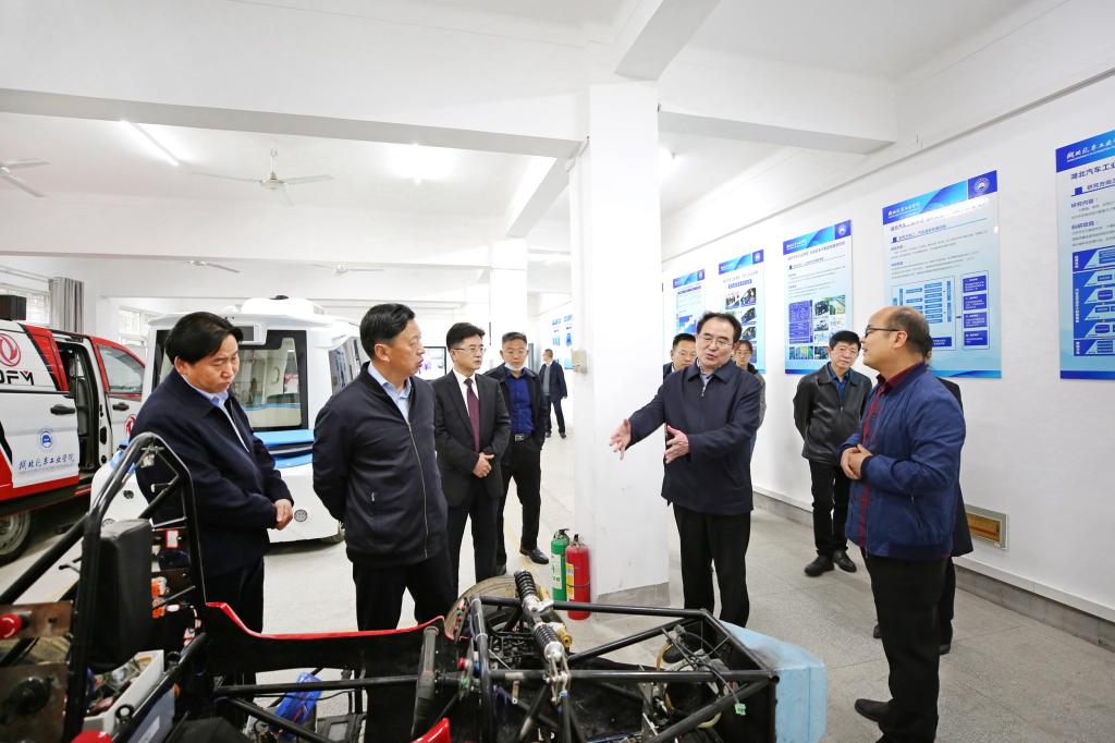 田辉玉一行先后参观了国家级制造装备数字化分中心、东风HUAT车队、汽车动力传动与电子控制湖北省重点实验室、主动安全与智能驾驶研究所、武当文化研究与传播中心,实地了解了我校的汽车特色,直观感受了我校的文化内涵。