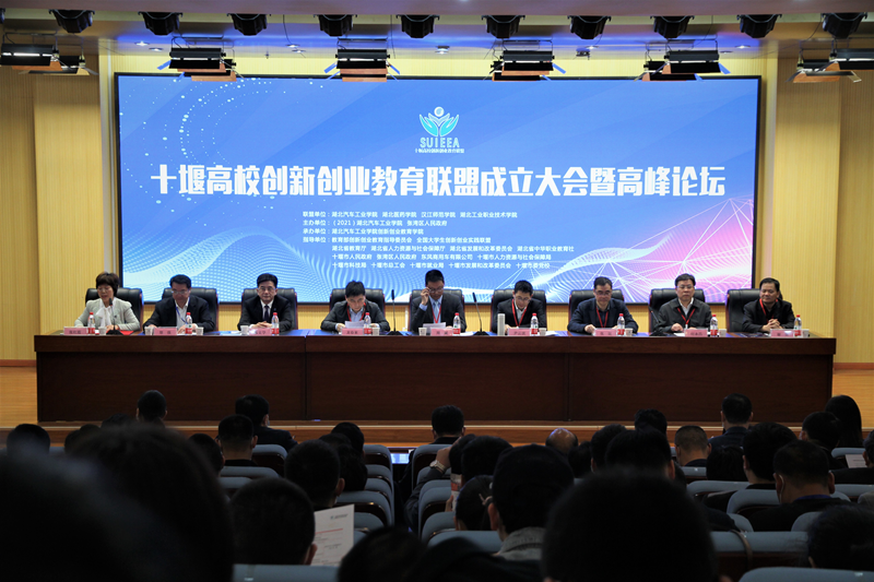 本网讯(文/缪勇 朱志斌)4月29日,十堰高校创新创业教育联盟成立大会在湖北汽车工业学院逸夫图书馆报告厅隆重举行。教育部创新创业教育指导委员会秘书长周斌、湖北省高校毕业生就业指导服务中心主任尹云波、湖北省人社厅劳动就业服务中心主任张昆、湖北省中华职业教育社三级调研员杨中胜、十堰市人民政府政策研究室主任龙春来、张湾区副区长段郧峰、郧阳区副区长望甜、茅箭区政府区办副主任刘静、十堰市发展和改革委员会副主任李江、十堰市人社局副局长金锐、十堰市总工会副主席郭升平、十堰市就业局局长周作东、十堰市科技局生产力促进中心主任陈红等省市区领导、汉江师范学院校长付永昌、湖北工业职业技术学院副校长郑强、湖北医药学院双创学院院长谢勇、湖北汽车工业学院党委副书记、校长张文学,副校长张红霞等十堰地区高校领导,以及教育部创新创业教育指导委员会委员、全国大学生创新创业实践联盟秘书长、厦门大学嘉庚学院副校长谢火木、教育部创新创业教育指导委员会委员(万学教育集团总裁)张锐、天使百人会副理事长周洛宏、东风商用车公司车身厂党委书记鄢宗云、北京中科致远科技有限责任公司总经理闫循华、杭州贝腾教育发展集团华中地区总经理潘津津等全国20余所高校、双创教育研究机构、企业代表160余人出席,会议由湖北汽车工业学院副校长张红霞主持。