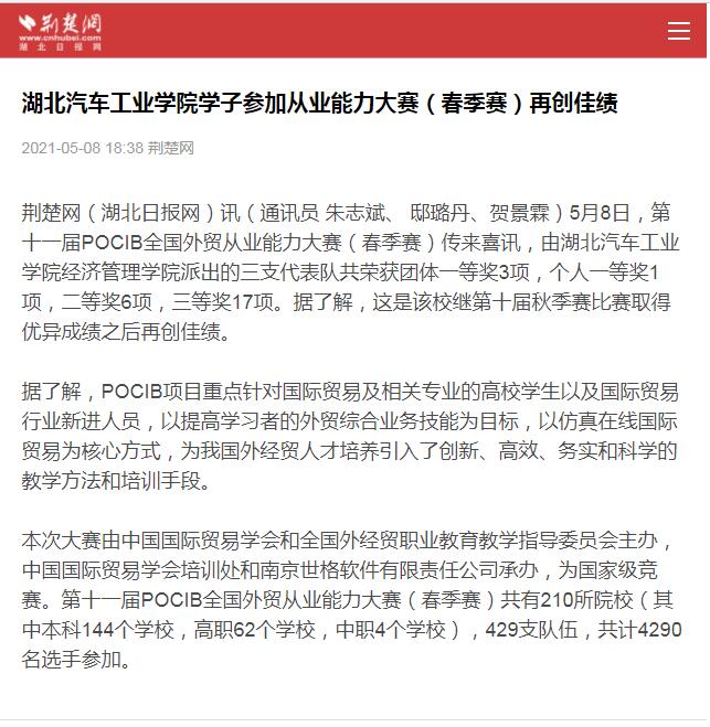【荆楚网】湖北汽车工业学院学子参加从业能力大赛(春季赛)再创佳绩