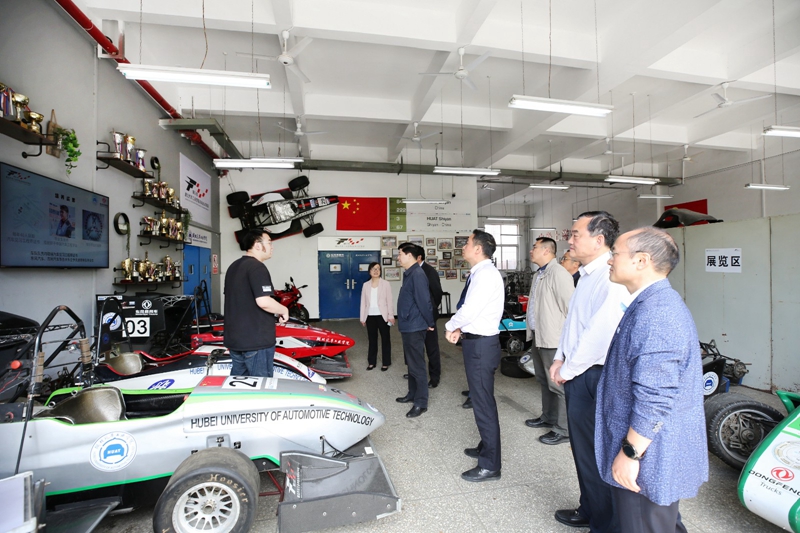 王炜一行先后参观了制造装备数字化国家工程研究分中心、大学生方程式赛车HUAT车队、汽车动力传动与电子控制湖北省重点实验室、主动安全与智能驾驶实验室(Sharing-X移动服务技术平台联合实验室),听取了相关平台负责人的汇报,并与科技工作者进行了亲切交流。