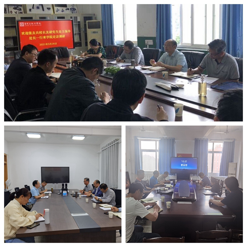 本网讯(文/何君)为进一步规范我校研究生培养过程,加强学位点建设,5月25日至28日,副校长张友兵带队赴各研究生培养学院进行走访调研。