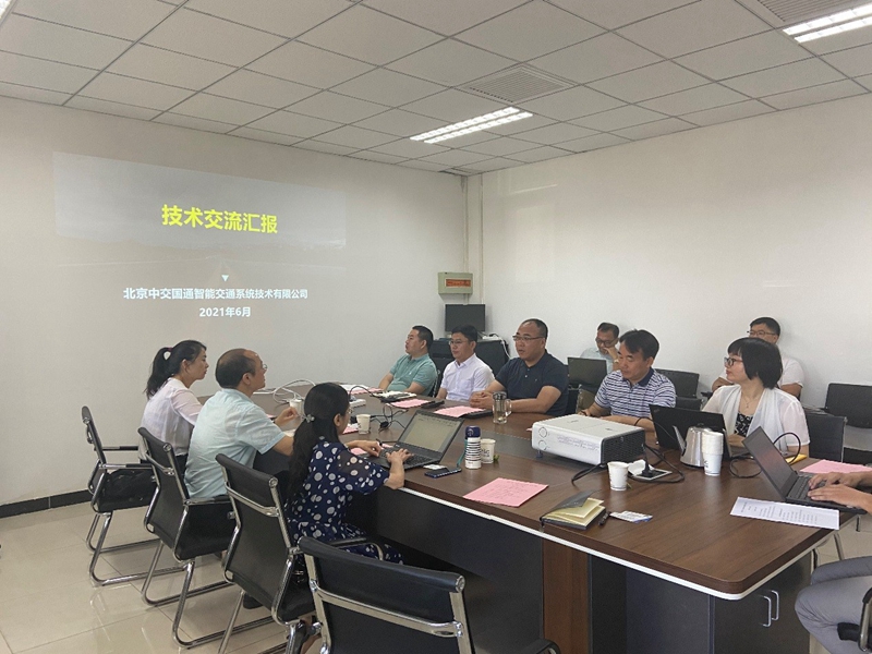 本网讯(文/丁光惠)6月4日上午, 副校长张友兵携我校科技处、电气与信息工程学院一行四人赴北京中交国通智能交通系统技术有限公司进行技术交流并洽谈合作事宜。北京中交国通智能交通系统技术有限公司董事长孟春雷、副总经理赵玉坤、产业发展部、路网管理与服务技术研究室等相关部门负责人参与此次交流。