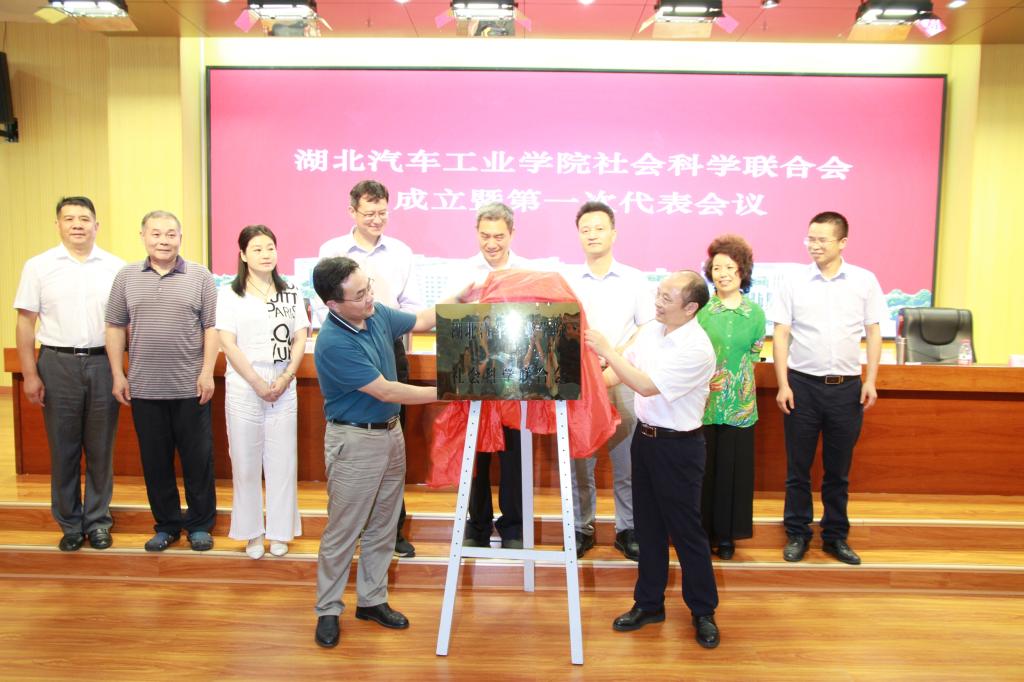 最后,湖北省社科联领导、十堰市社科联领导、学校领导、学校社科联领导集体上台,为“湖北汽车工业学院社科联”揭牌并合影。