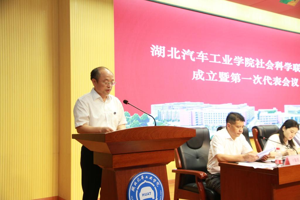 湖北汽车工业学院社科联的成立,不仅为学校自身哲学社会科学事业发展构筑了新的平台,也在学校与省、市社科联及有关方面之间搭建新的沟通渠道和桥梁纽带。根据省委关于深化社科联改革实施方案和省社科联九代会及九届二次全会的精神要求,他希望学校社科联努力做好坚持正确的政治方向、履行重要的职能职责、发挥群团组织的特点优势三个方面的工作。