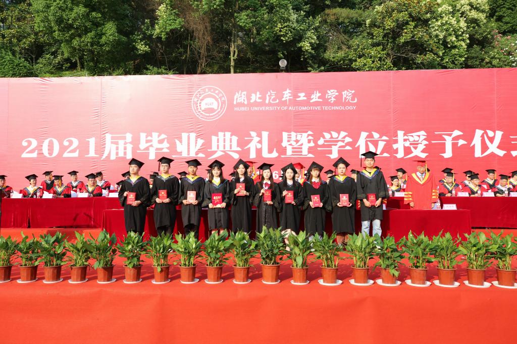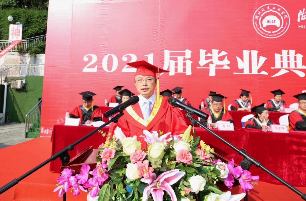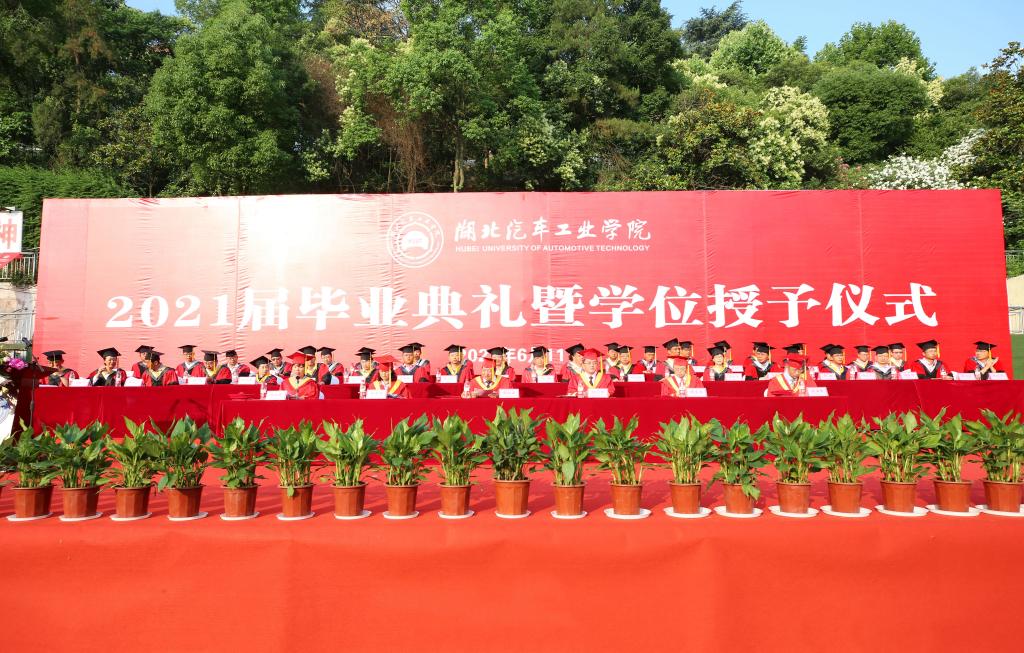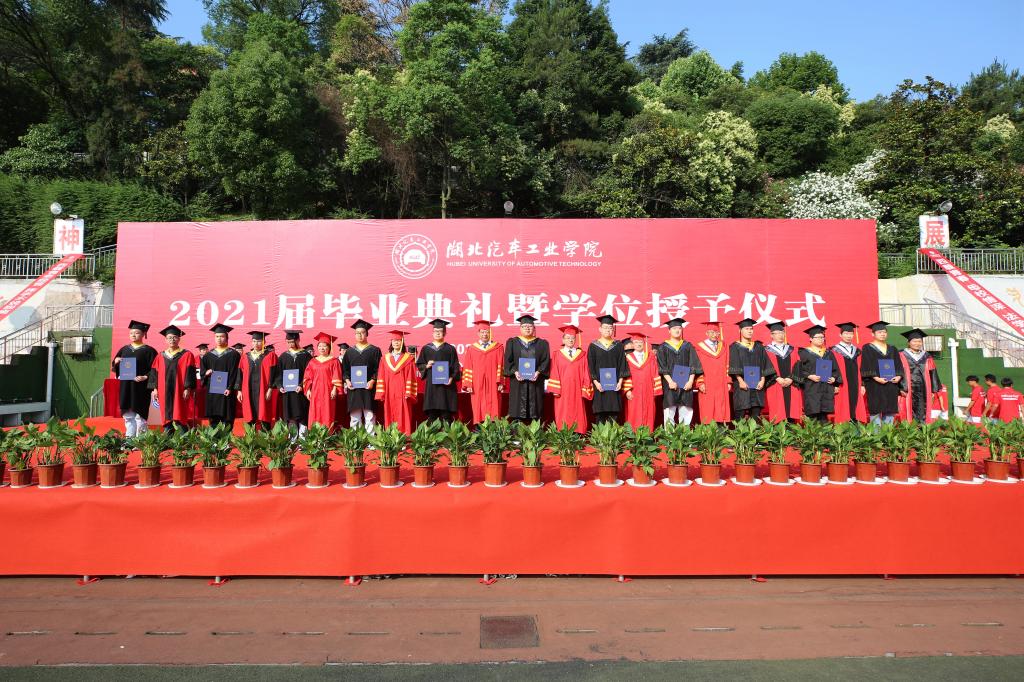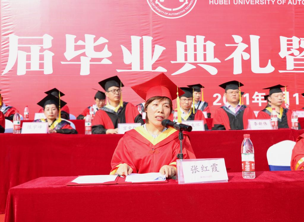 本网讯(文 王新/图 广娟)6月11日,湖北汽车工业学院2021届毕业典礼暨学位授予仪式在学校田径场隆重举行。校党委书记程红兵、校长张文学,纪委书记林雪荣、副校长张红霞,副校长张友兵,工会主席陈海峰以及校学位评定委员会成员、相关处室负责人、各学院党政负责人、教师代表、毕业生辅导员、班主任、2021届全体毕业生出席了本次典礼。毕业典礼由副校长张红霞主持。