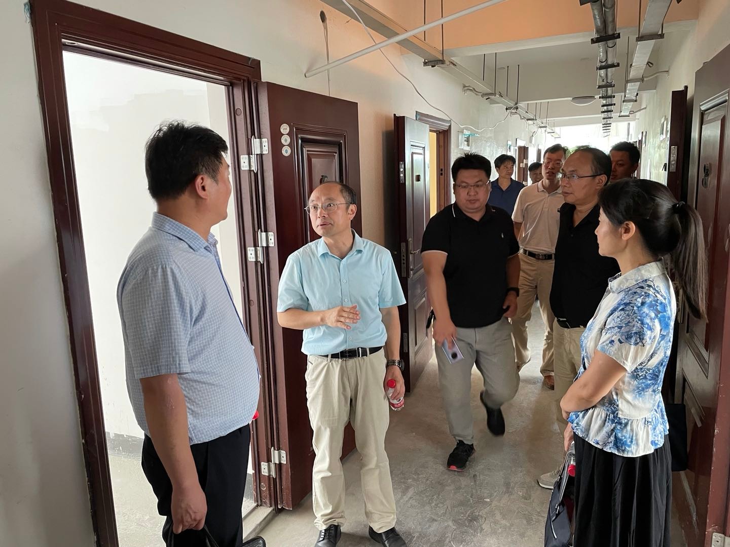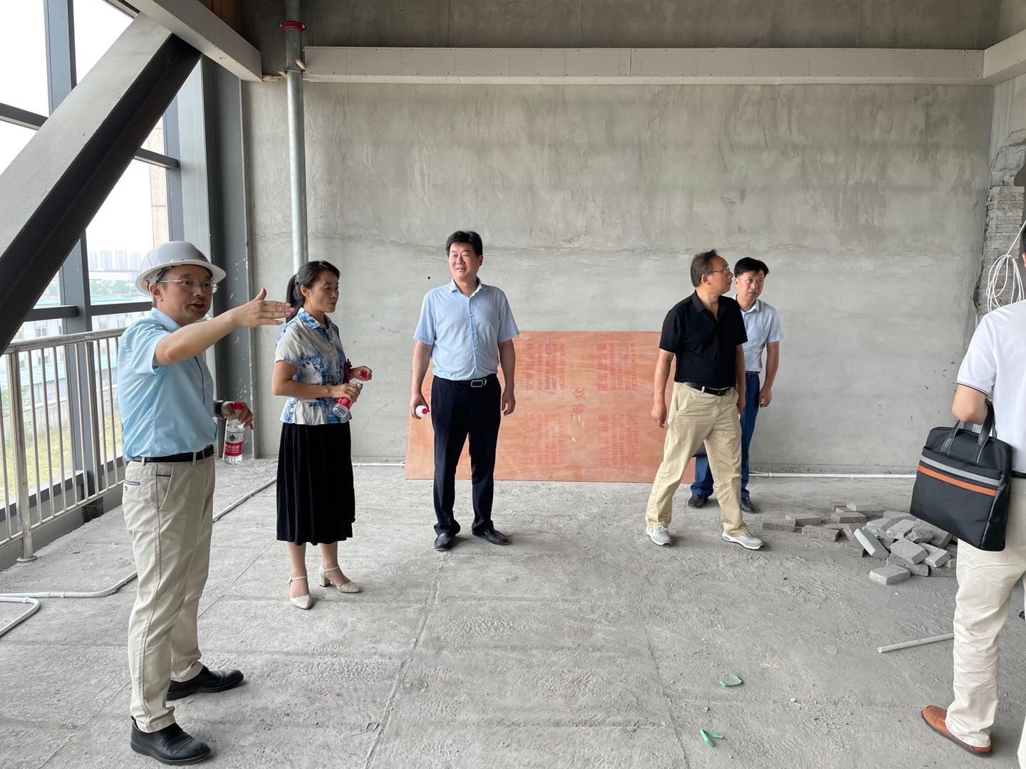 汪兴国一行参观考察了学校位于襄阳科技城二期园区教学科研场地和师生宿舍,在做好安全准备工作后,考察队伍进入正在紧张作业的施工现场,襄阳基地主任汤德强向来访人员实地详细介绍了教学场地的功能布局和工程进展情况。