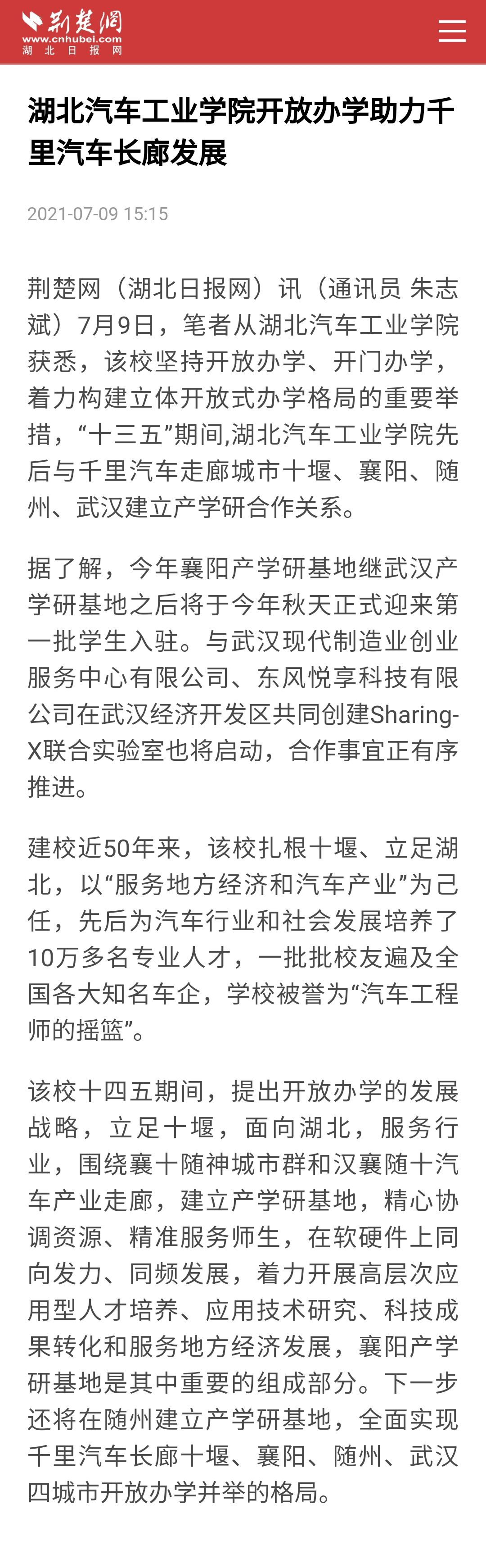 【荆楚网(湖北日报网)】湖北汽车工业学院开放办学助力千里汽车长廊发展