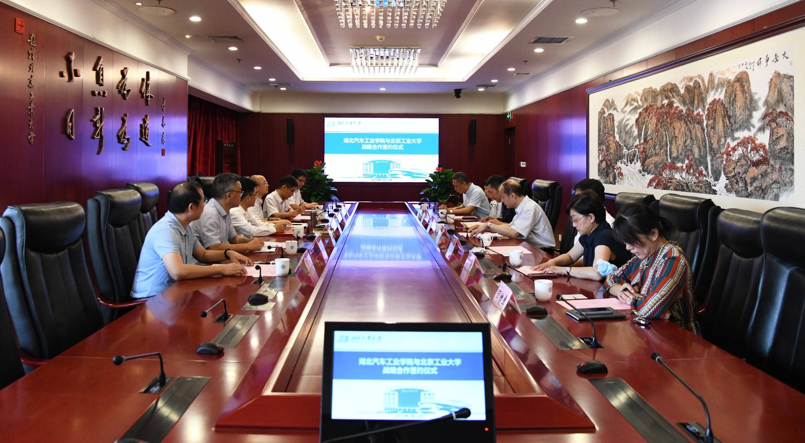 本网讯(文 图/黄进涛)为贯彻落实习近平总书记在推进南水北调后续工程高质量发展座谈会上重要讲话精神以及京鄂、京堰战略合作协议的安排部署,进一步深化拓展我校与北京高校的对口协作工作,7月22日-23日,校长张文学、副校长张友兵带队先后到北方工业大学、北京工业大学开展交流对接活动,并签署校际框架合作协议。
