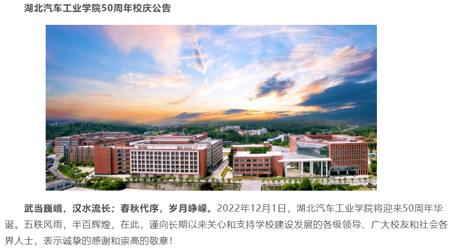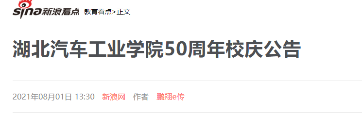【新浪网】湖北汽车工业学院50周年校庆公告