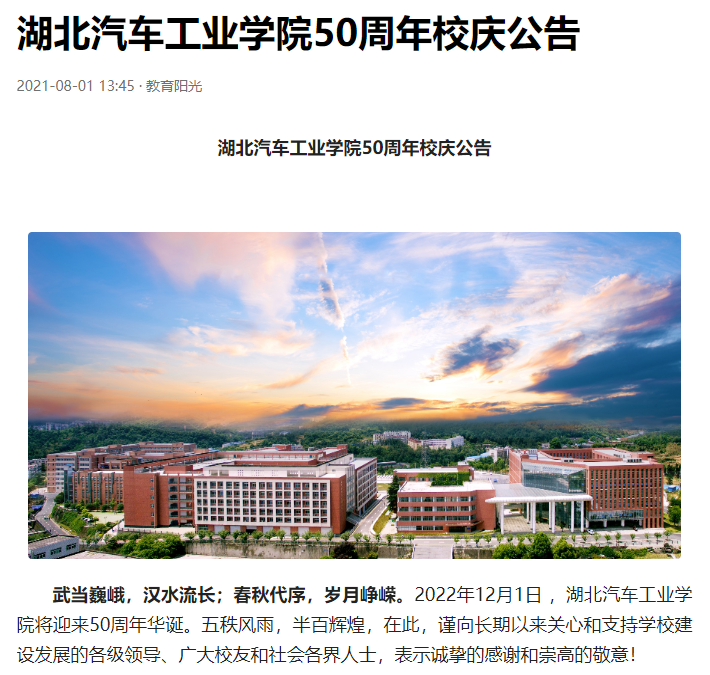 【今日头条】湖北汽车工业学院50周年校庆公告