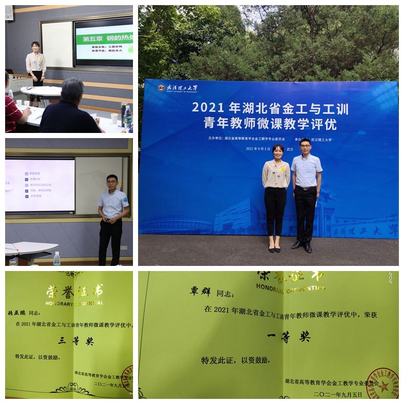 本网讯(文/顿亚鹏 刘峰)为了配合教育部新工科教学改革以及打造一批“金课”的精神,更好地应对新形势下的工程实践教学和课程建设的新要求和新挑战,研究和交流新形势下的《工程材料与机械制造基础》系列课程和工程训练课程的教学方法,促进青年教师的快速成长,打造《工程材料与机械制造基础》系列课程和工程训练课程的“金课”。根据教育部机械基础课程教学指导分委员会与教育部工程训练教学指导委员会相关文件精神,9月5日湖北省高等教育学会金工教学专业委员会在湖北省武汉理工大学举行2021年金工与工训青年教师微课教学评优比赛。华中科技大学、武汉大学、中国地质大学、武汉理工大学等10多所高校参赛。经过层层竞技,我校教师覃群获得比赛一等奖、顿亚鹏获得三等奖的好成绩,覃群并将代表湖北省出征国赛。