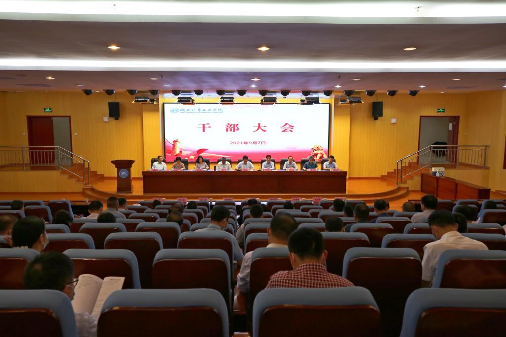 本网讯(文/图 邓玉洁)9月7日下午,学校在逸夫图书馆一楼报告厅召开了2021年秋季学期开学干部大会,全体校领导、中层干部参加了大会。大会由校党委书记程红兵主持。