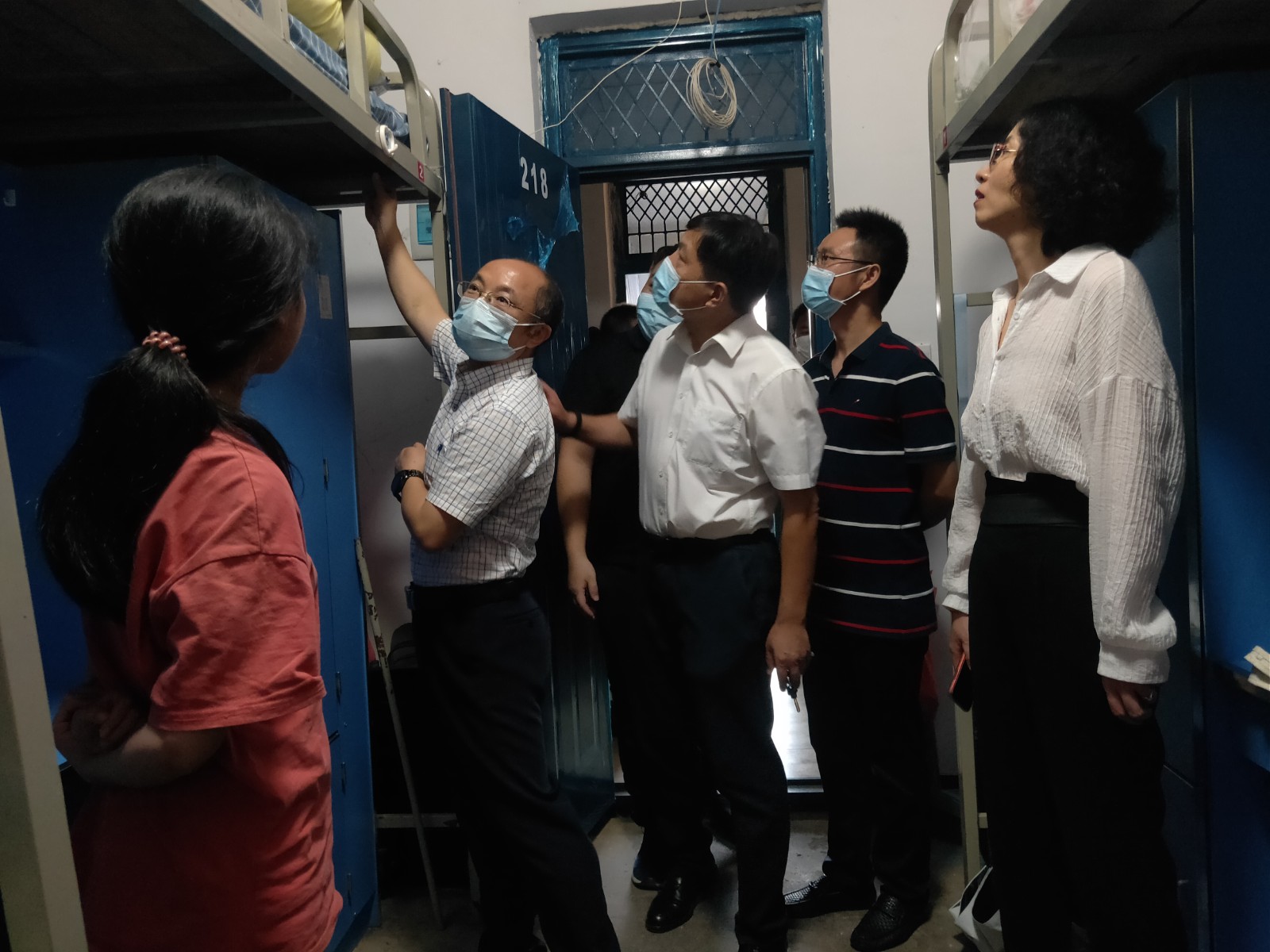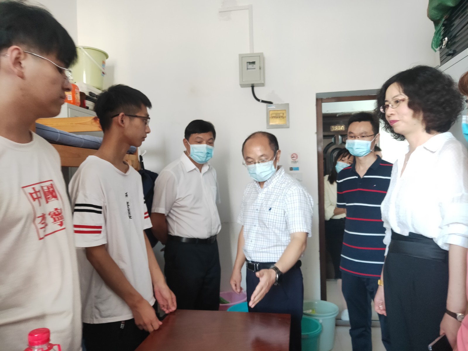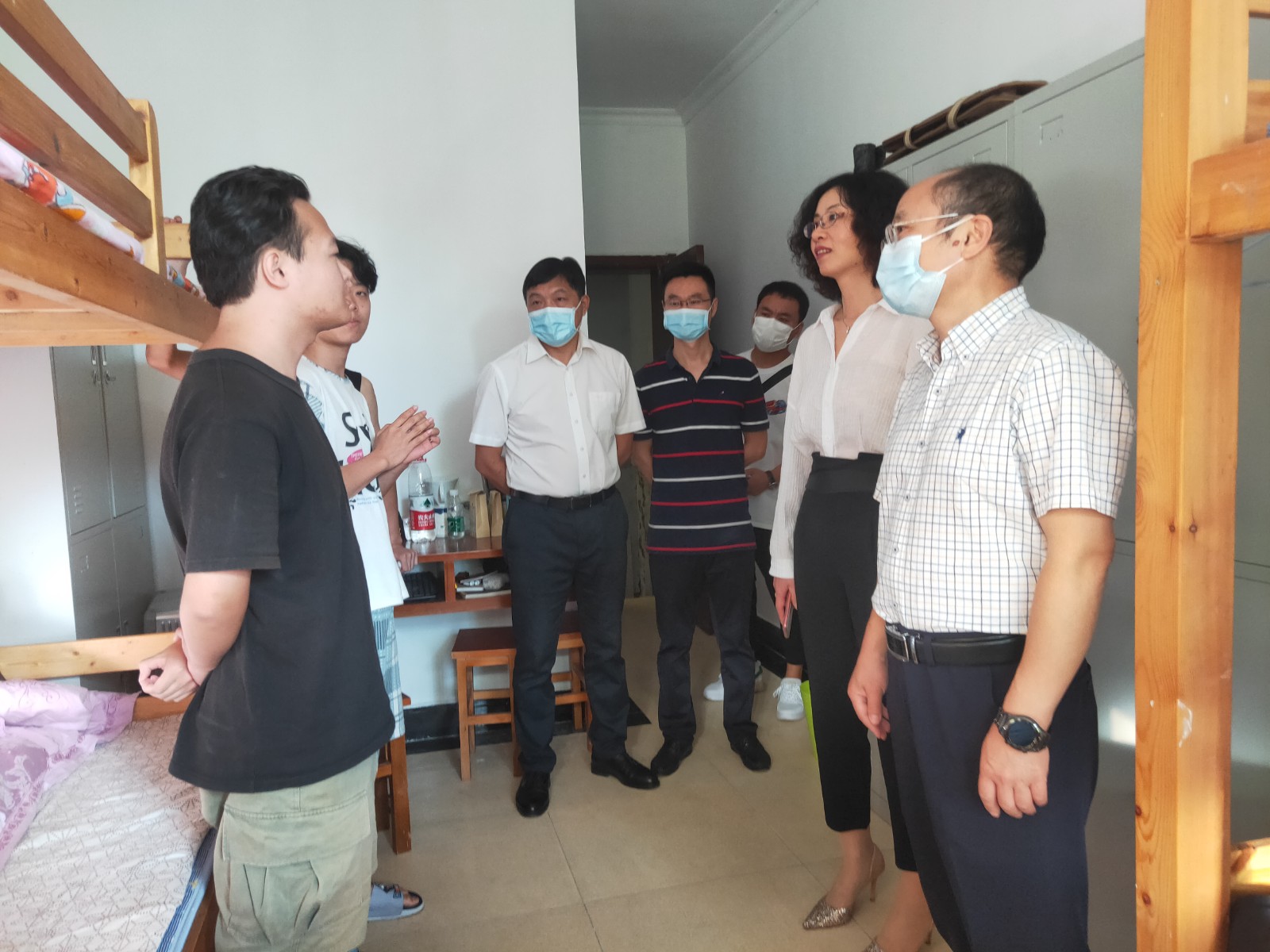 本网讯(文/图 罗珍)为了解科技学院2021级新生适应情况,9月13日下午,副校长张友兵深入虹枫和西区宿舍,实地走访科技学院新生宿舍,给新生们送去关怀和温暖。科技学院分党委书记米欣欣、院长李正桥、院长助理兼学工部部长李涛、系部辅导员陪同走访。