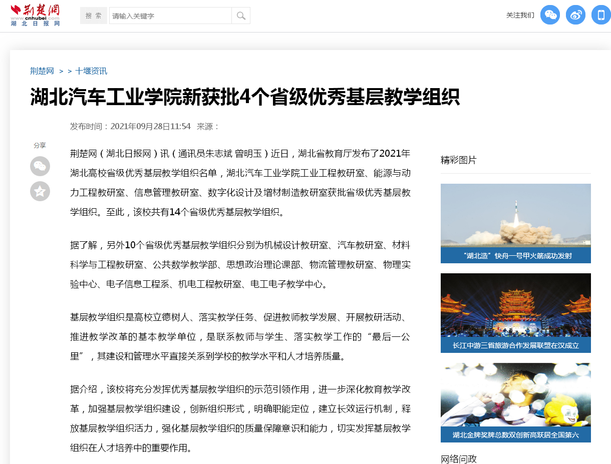 【荆楚网】湖北汽车工业学院新获批4个省级优秀基层教学组织