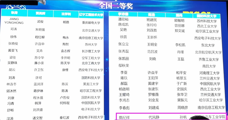 据了解,该赛事获得全国奖的高校大部分是985/211等名校,以“学院”命名的高校寥寥无几,全国一等奖的名单中以“学院”命名的高校更是只有“湖北汽车工业学院”一所,而湖北省的高校中只有汽院一所高校获得一等奖,一、二等奖的总数排序也是湖北省第一,可谓“万丛红中一点绿”。大赛评委全部是重点大学的专家教授,对我校留下了深刻的印象,给予了好评,起到了很好的宣传效果。湖北省电子信息类专业教学指导委员会秘书长、华中科技大学曾喻江教授亲自对我校提出重点表扬。