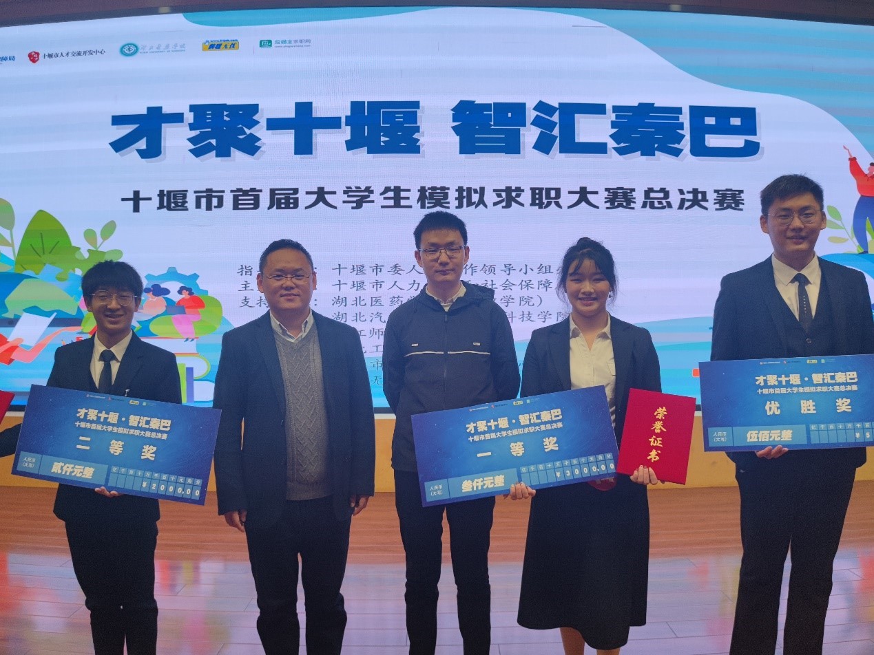 本网讯(文/图 金涛)在刚刚结束的“才聚十堰 智汇秦巴”十堰市首届大学生模拟求职大赛总决赛中,我校数理与光电工程学院潘彦灵同学喜获冠军,电气与信息工程学院蔡朝阳同学荣获二等奖,汽车工程学院包宇涵同学获得优胜奖。