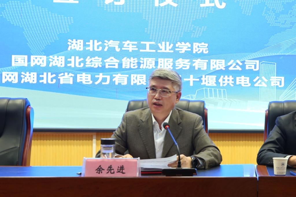 国网湖北省电力有限公司十堰供电公司总经理杨天功介绍了战略合作项目情况。他说,湖北汽车工业学院综合能源示范校园建设项目战略合作框架协议签订,这是全省第二家、也是十堰首家高校与国网湖北电力达成综合能源示范校园建设项目合作,作为合作方,国网十堰供电公司将认真落实协议内容,加快推动项目落地,为争创教育系统“全国能效领跑者示范学校”、电网系统“校园综合能源服务示范项目”携手共进。