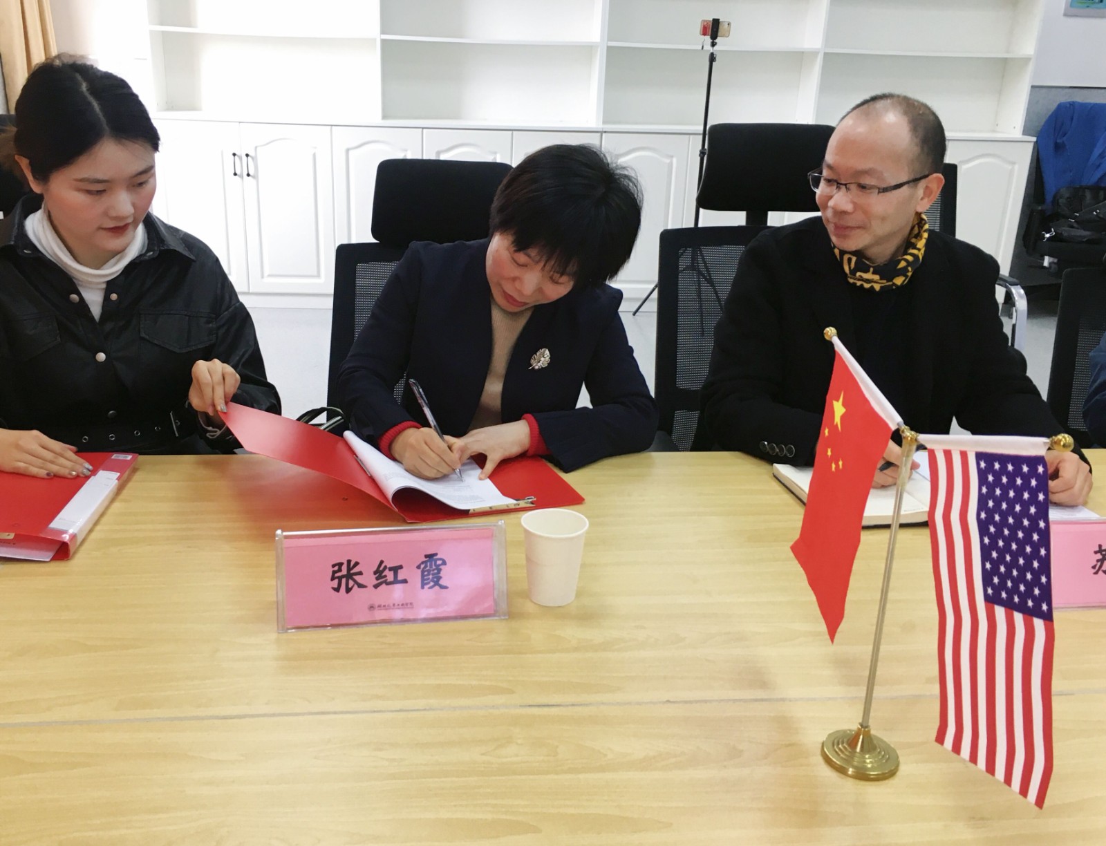 美国凯特林大学副校长JamesZ.Zhang、副教务长兼文理学院院长Kathryn Svinarish、研究生院院长Scott Reeve、管理学院院长Haseeb Ahmed、工程学院院长Craig Hoff,我校副校长张红霞、国际合作交流处副处长苏子波、研究生处副处长杜祥军、机械工程学院副院长王红霞、经济管理学院院长助理程曾平、国际合作交流处办公室主任张永红、工作人员刘欣参加了签约仪式。签约仪式由美国凯特林大学国际项目主管Laura M. Allen和我校国际合作交流处留学生工作办公室主任方鹏共同主持。