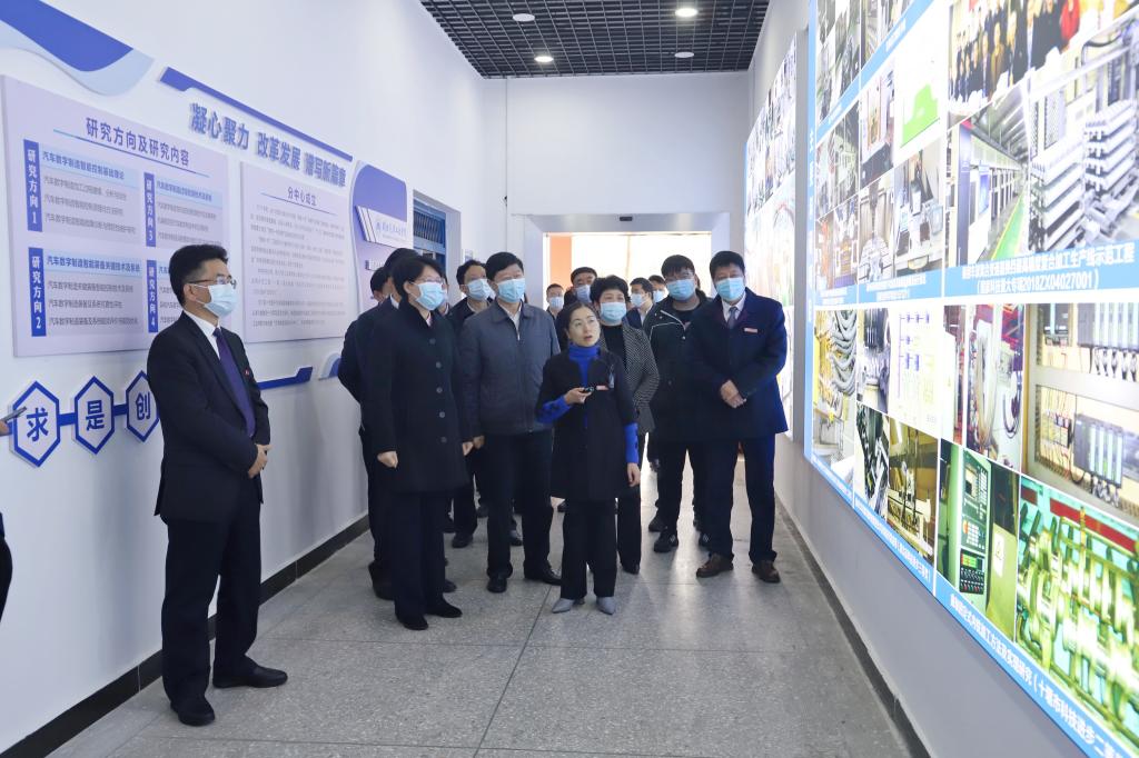 在制造装备数字化国家工程研究中心汽车制造自动化分中心,电气与信息工程学院院长陈宇峰向肖菊华副省长一行介绍了围绕汽车制造与装备技术开展相关科研与本科教学理实一体化课程改革成果展(展板)、曲轴制造集成自动化研究平台、机器人平台、数字制造装备平台及中心科研成果,教育教学改革成果和社会服务情况。