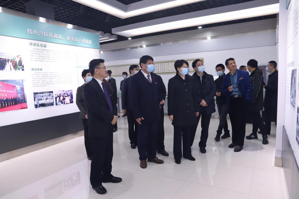 随后,肖菊华副省长一行参观了学校校史馆。在校史馆党建引领成效展示厅,肖菊华副省长表示:高校始终坚持把党的思想政治建设摆在首位,把准政治方向,坚持党的政治领导,夯实政治根基,涵养政治生态,防范政治风险,永葆政治本色,提高政治能力,教育引导全校师生坚定共产主义远大理想和中国特色社会主义共同理想,不断强化马克思主义理论武装,深入开展党的基本理论、基本路线、基本方略的教育,使全校师生在思想上政治上行动上与党中央保持高度一致。
