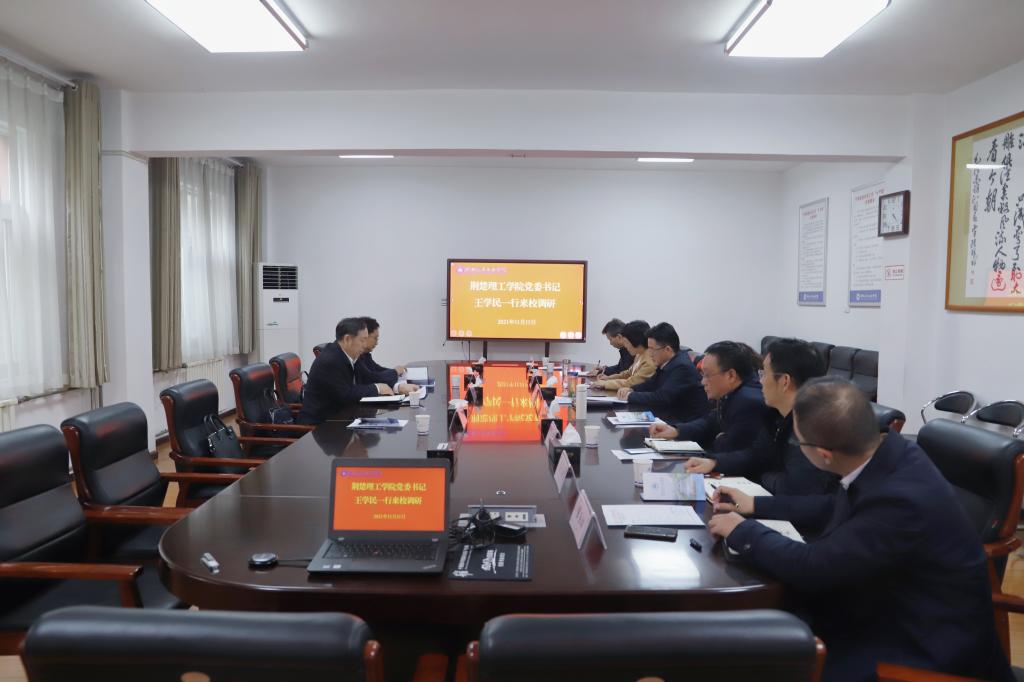 本网讯(文/图 邓玉洁)11月11日下午,荆楚理工学院党委书记王学民一行来校调研,校长张文学、纪委书记林雪荣、副校长张红霞陪同调研。王学民一行参观了我校校史馆、汽车动力传动与电子控制湖北省重点实验室,详细了解了我校的发展历程、办学特色和优势以及取得的成绩。