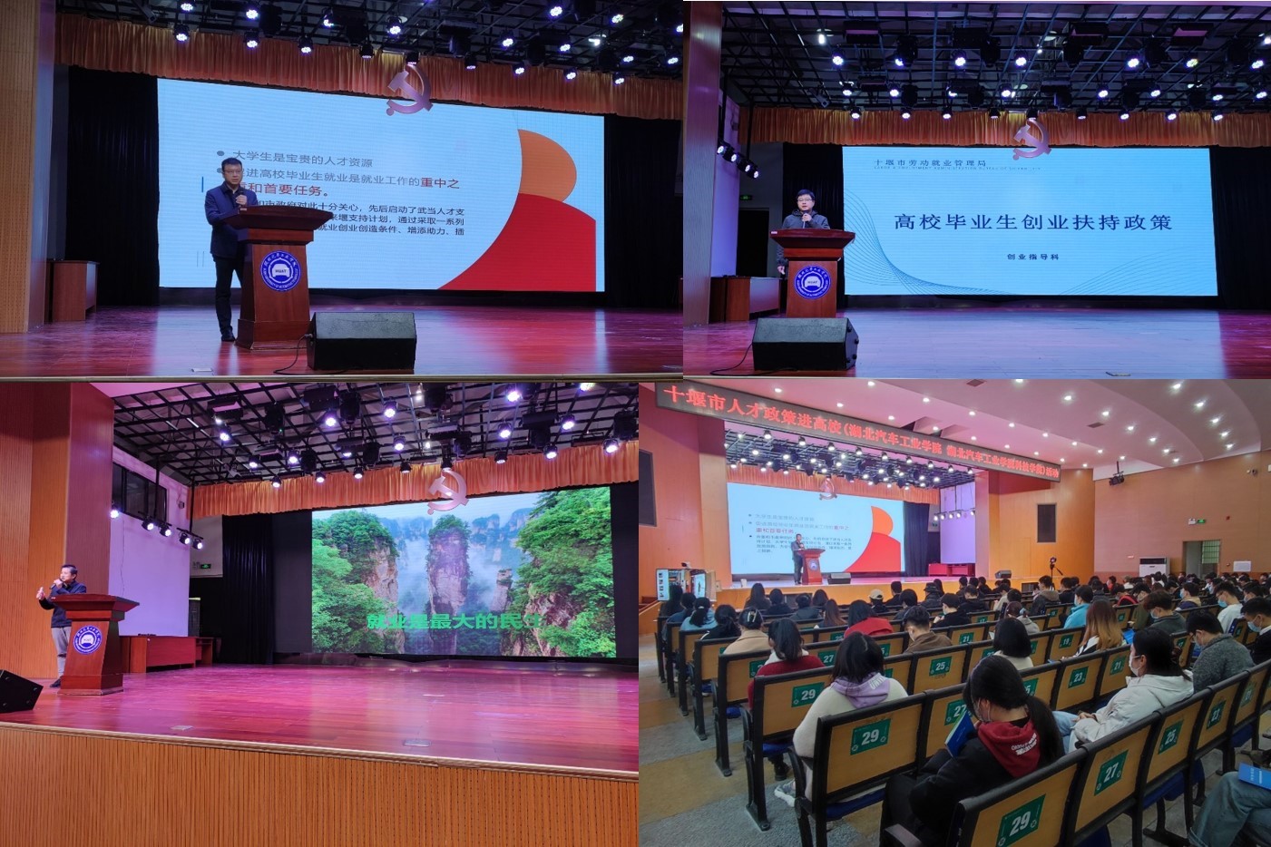 本网讯(文/金涛)为支持人才强市战略,扩大人才政策知晓面、覆盖面和惠及面,助力我市人才政策落实落地,11月12日上午,招生与就业处联合十堰市人力资源和社会保障局分别在我校大礼堂和图书馆举办十堰市高校毕业生就业创业政策宣讲会和十堰市高校毕业生就业创业政策现场宣传活动。