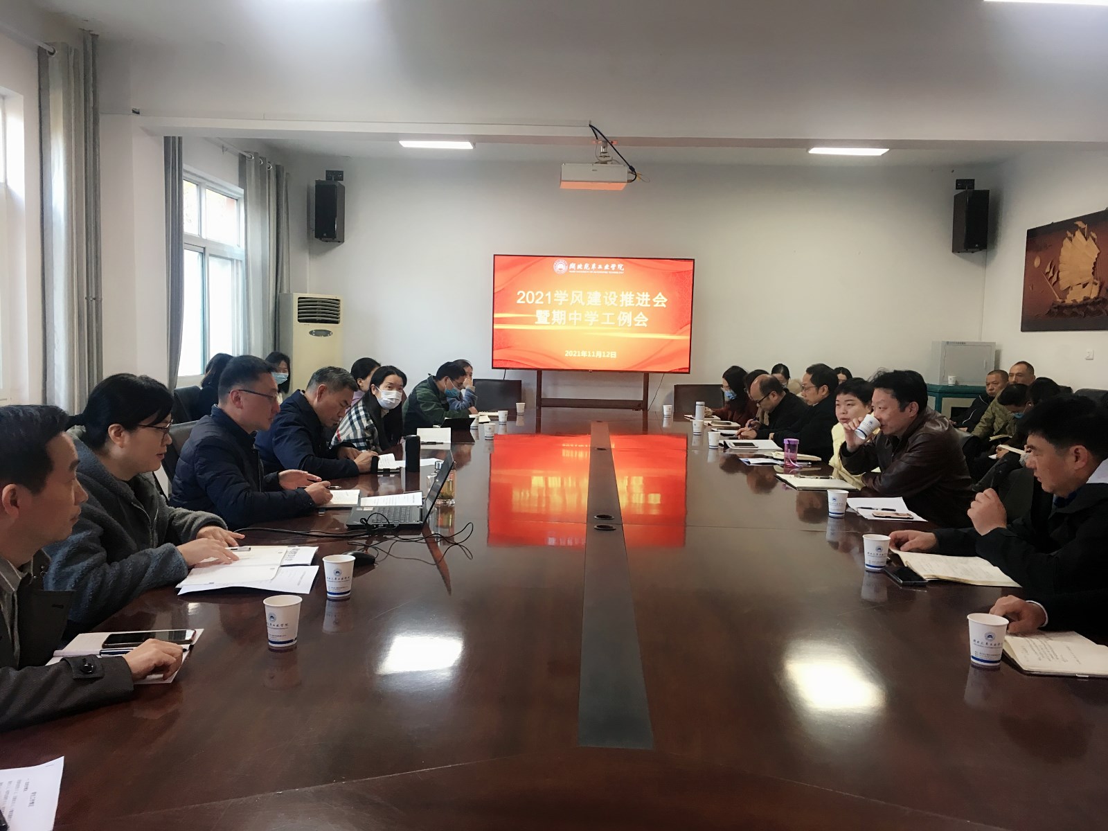 本网讯(文/王曼 图/王新)11月12日上午,学校在行政楼六楼会议室召开学风建设推进会暨期中学工例会。校党委副书记杨立志出席会议。学工部、团委、教务处、保卫处、校园建设与管理处、体育部、校医院、创新创业教育学院等相关职能部门负责人及各二级学院(含科技学院、继续教育学院)分党委书记、副书记,学工办主任和分团委书记及相关人员参加了会议。会议由学工部部长、校团委书记陶伟主持。