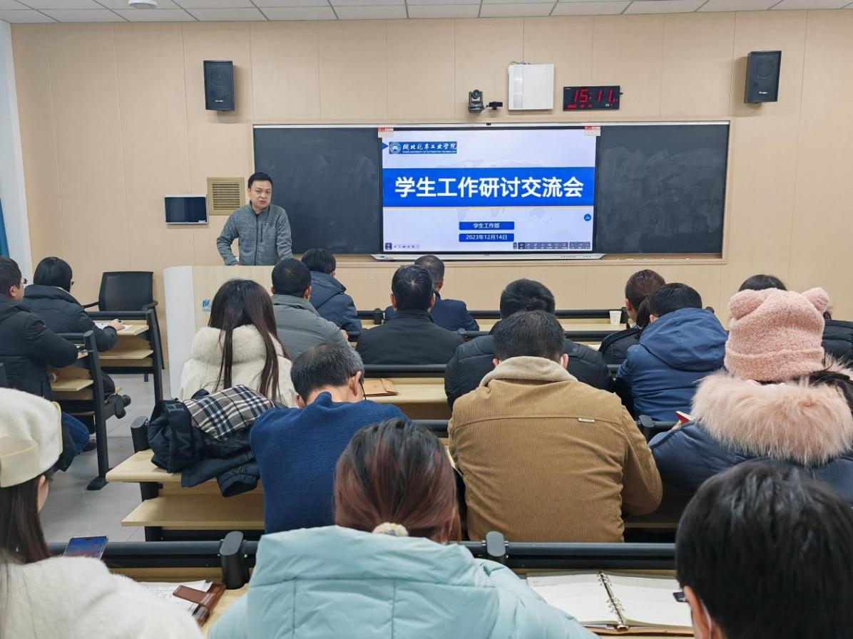 会上,部分代表就学习调研经验体会进行汇报交流。团委书记杜祥军从坚持一体推进团学工作,围绕“双核”、提升“三力”、强化“四驱”、构建“五维”的工作模式出发,汇报了到武汉兄弟高校的调研成果,介绍了我校共青团工作思路。学工部副部长杜昕俊汇报了参加湖北省高校学生工作品牌项目建设管理培训的学习情况,并从多读多思多写、找准研究思路、强化研究意识等方面分享了学习心得和工作经验。学工部辅导员素质发展中心晏冉老师围绕“一站式”学生社区综合管理模式,介绍了武汉多个兄弟院校的建设思路和实际情况。