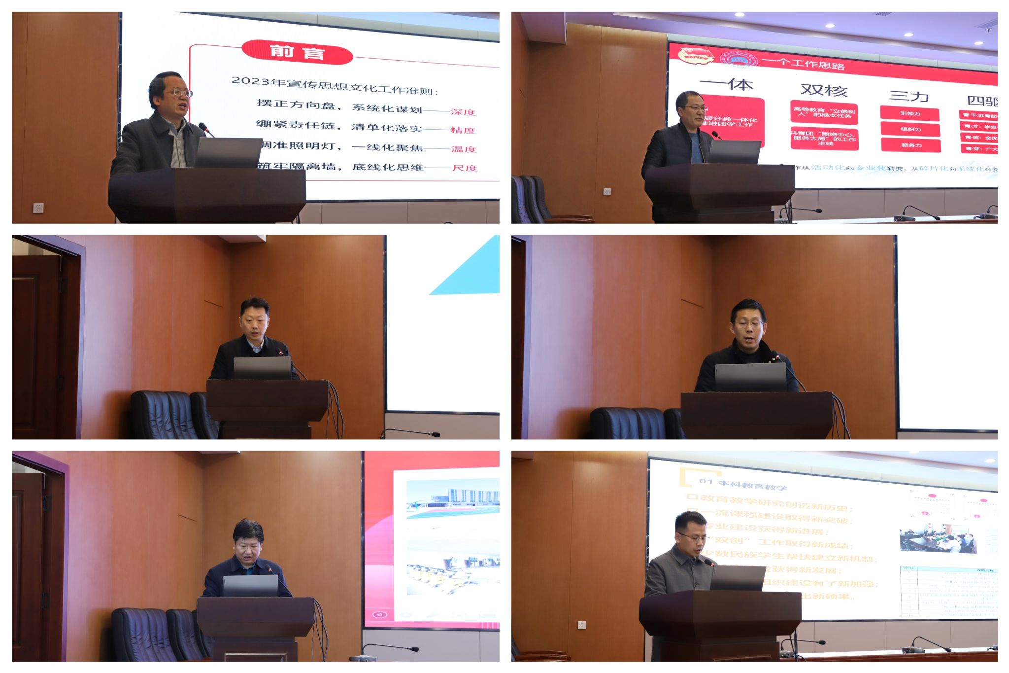 李涛在主持讲话中充分肯定了各二级单位、基层党组织在过去一年中所取得的成绩。他指出,2023年是全面贯彻落实党的二十大精神的开局之年,是学校实现“三步走”发展战略的关键之年,也是学校发展极不平凡、极为重要的一年。学校坚持以党建为引领,以立德树人为根本,以开放创新为驱动,不断推动学校发展向更高质量、更高水平、更高层次迈进,实现了高质量跨越式发展。(审稿 杜鹏)