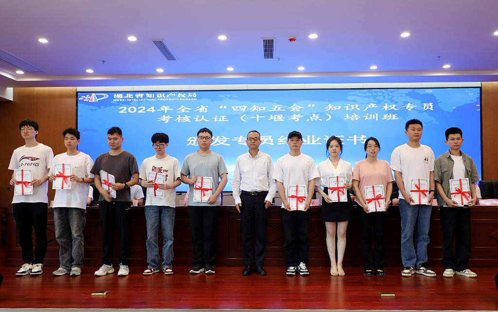 本网讯(文 岳嘉文/图 滕文艳)5月22-24日,由湖北省知识产权培训(十堰)基地承办的2024年全省“四知五会”知识产权专员(十堰考点)考核认证培训在我校成功举办。湖北省知识产权局党组成员、副局长程浩,学校副校长张红霞,十堰市市场监管局(知识产权局)总工程师欧阳辉以及科发院、继教院、知识产权学院有关负责同志参加结业典礼。