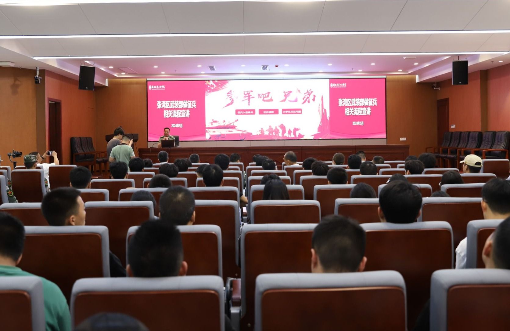 王文山充分肯定了学校2024年春季征兵工作成绩,并代表学校向十堰军分区、张湾区武装部长期以来给予的大力支持表示衷心的感谢。王文山指出,做好大学生征兵工作,是贯彻落实习近平强军思想、支持国防军队建设的具体体现,是高校的重要政治责任,意义重大。王文山还深刻阐述了当代大学生参军入伍的重要意义,对全校热血青年发出了携笔从戎,踊跃参军的号召,并提出了殷切期望。