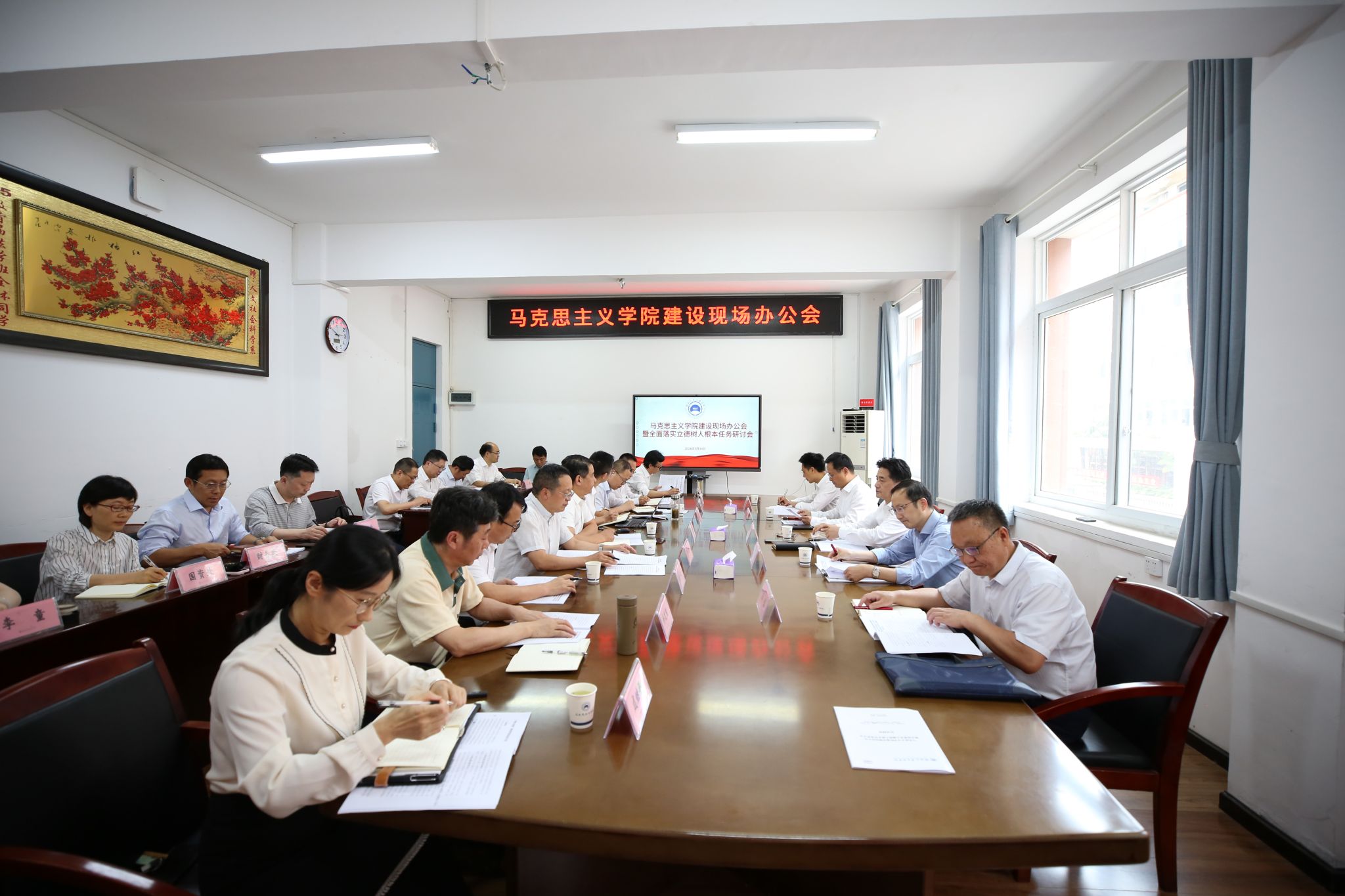 本网讯(文 刘俊/图 李一凡) 5月30日下午,我校在马院3206会议室召开马克思主义学院建设现场办公会暨全面落实立德树人根本任务研讨会,就落实立德树人根本任务、《普通高等学校马克思主义学院建设标准》(2023年版),推进马克思主义学院和思政课建设进行专题研讨和部署。校党委书记张文学、党委副书记李涛、党委副书记陈建平,党委常委、组织部部长王镇,党委常委、党政办主任王文山出席会议,陈建平主持会议。