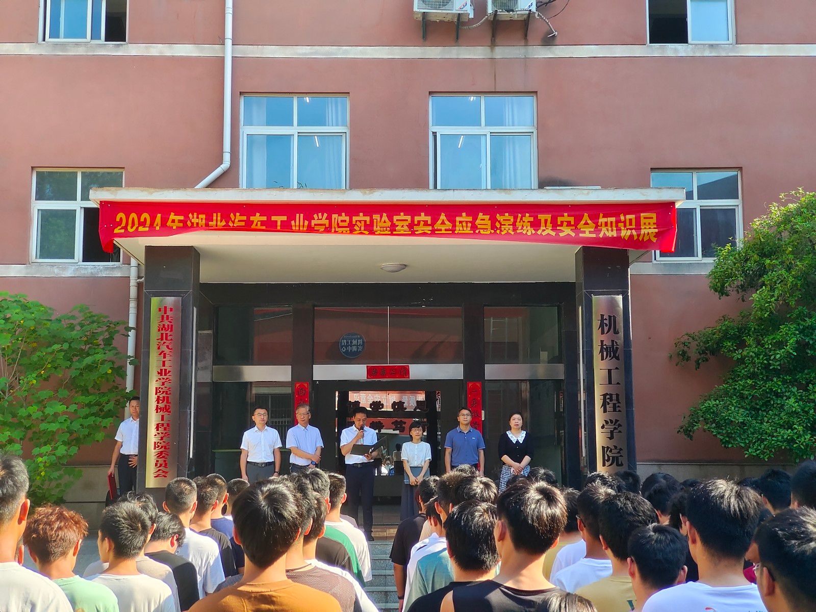 本网讯(文 吴少军/图 吴振昊、华文龙、靳静娜)6月初夏,荷风送香,今年6月是全国第23个“安全生产月”,6月12日上午,国资处、保卫处、建管处、机械学院、东岳消防大队红卫救援站在机械大院联合举办了“人人讲安全,个个会应急——畅通生命通道”为主题的实验室安全应急演练及安全知识展系列活动,校党委常委、党政办主任王文山出席演练活动并讲话,国资处、保卫处、建管处、机械学院、双创学院、东岳大队红卫消防救援站消防队员,相关职能部门及各学院分管负责人、实验室主任、实验教师、学生代表等共220余人参与了活动。活动由保卫处副处长张华主持。