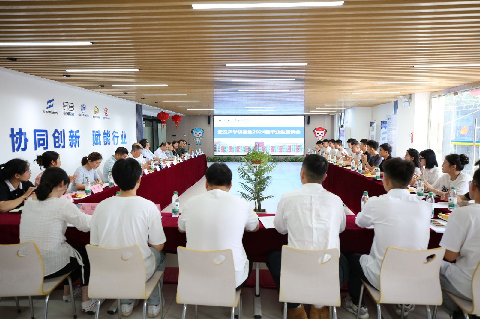 本网讯(文 张运/图 干枘鑫)6月11日下午,湖北汽车工业学院武汉产学研基地2024届毕业生座谈会在一楼大厅举行。副校长张友兵、学工部部长王关锋、数理与光电工程学院院书记张默、院长李建、电信与工程学院院长黄海波、工程师学院书记曾小岩、艺术与设计学院副书记王新、经管学院副书记周丹、学工办主任张倩、武汉产学研基地分党委书记郭都玺、副主任周恩德、副书记薛建云等6名工作人员以及18名毕业生代表参加了本次座谈会。会议由武汉产学研基地分党委书记郭都玺主持。