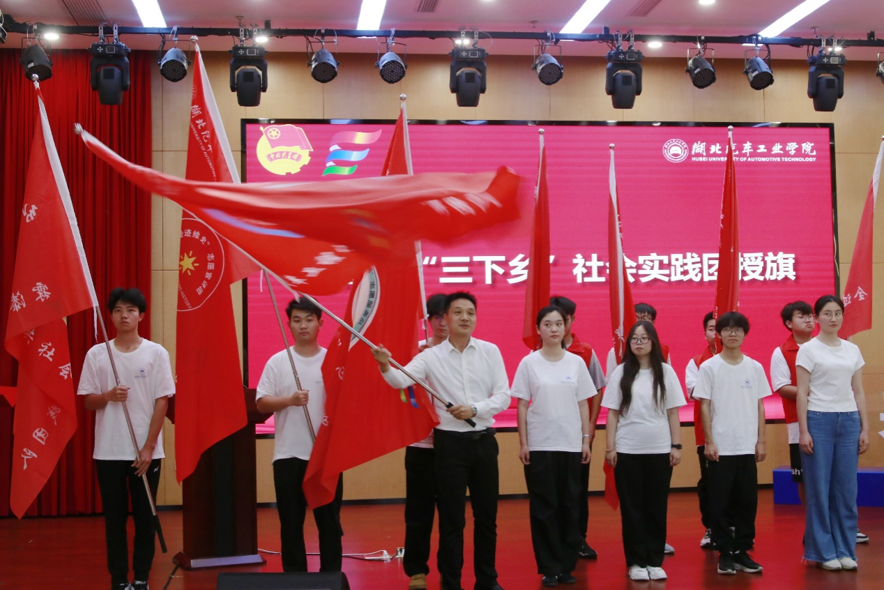 王文山为暑期“三下乡”社会实践团授旗,并做动员讲话。王文山充分肯定了2023年暑期社会实践取得的成绩,勉励学生以优秀团队典型案例为榜样,汲取历年优秀项目的宝贵经验,用“真实践”服务地方社会经济发展、持续彰显汽院影响力。王文山要求,要精心谋划,组织动员,与毕业生“留堰”“留鄂”工作形成合力,拓宽社会实践的广度;要突出特色,紧紧围绕学生专业特长,发挥自身专业优势,提升自身专业素养;要脚踏实地,推进实践行动深入一线,坚决杜绝走马观花、只调不研,要形成高质量的调研成果,用成效检验能力水平;要宣传提炼,塑造品牌,持续提升学校社会实践活动影响力;要周密组织,注重安全保障。王文山希望广大师生能积极行动,在实践中收获历练、收获成长。