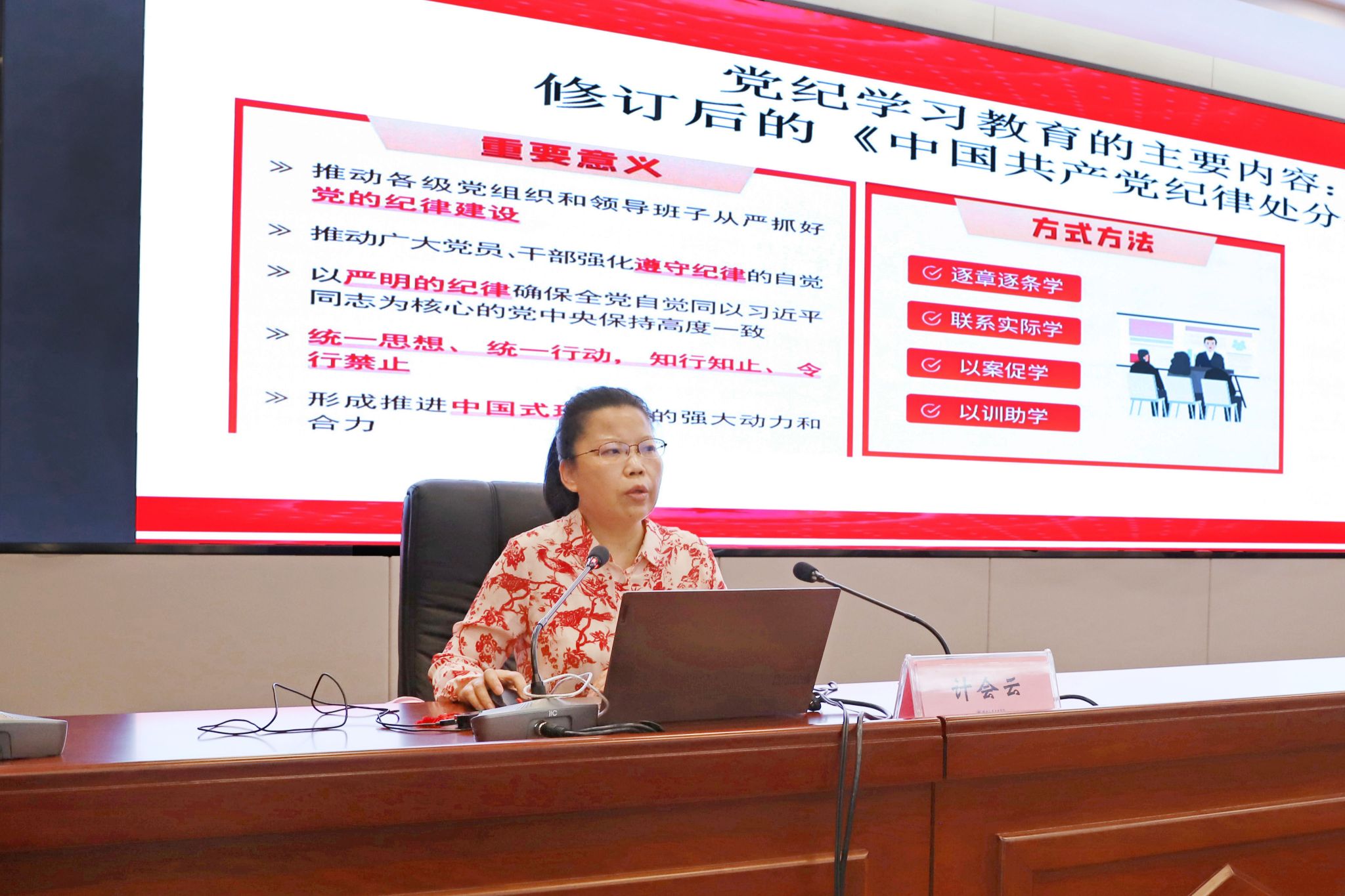 培训会上,十堰市委党校计会云教授以《为新征程全面从严治党提供坚强纪律保障》为题,从深刻认识《条例》修订的重要意义、准确把握《条例》修订的主要内容、认真抓好《条例》的学习贯彻执行等三个方面,用通俗易懂的语言、贴合工作实际的真实案例,进行了深入细致地讲解,将《条例》内容具体化、生动化、形象化地呈现在大家眼前,既有思想高度、理论深度,又有很强的针对性和感染力,让党员干部接受了一次深刻的党纪学习教育和精神洗礼。