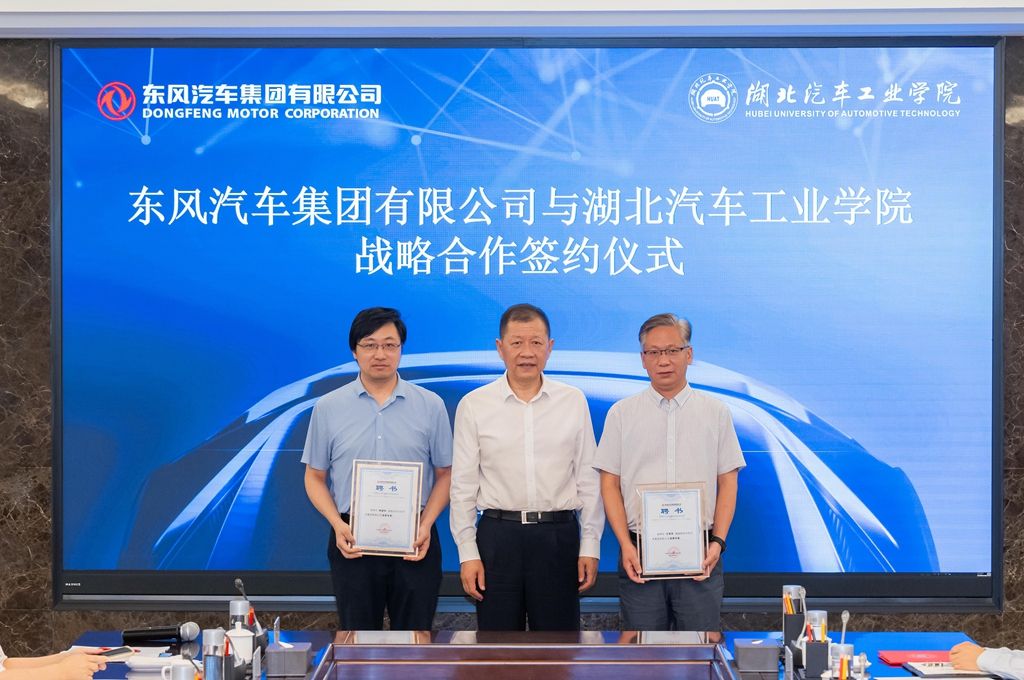 本网讯(文/王洪涛)6月26日,党委书记张文学,校长王晓,党委副书记李涛,党委常委、党政办主任王文山一行赴东风汽车集团有限公司签署战略合作协议。东风汽车集团有限公司党委书记、董事长杨青,党委常委、副总经理尤峥出席并讲话,会议由尤峥主持。