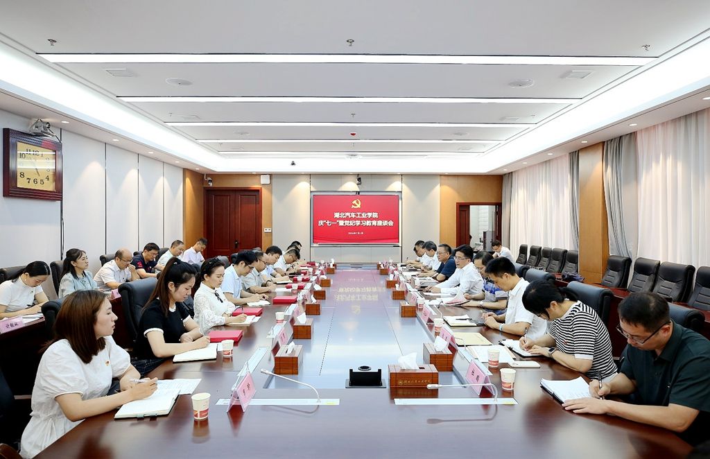 本网讯(文 张煜紫、肖越/图 李一凡)为庆祝中国共产党成立103周年,进一步推动学校党纪学习教育走深走实,7月1日,学校在产教大楼三楼多功能会议室召开庆“七一”暨党纪学习教育座谈会。校党委书记张文学出席会议并讲话,党委副书记李涛主持会议。党委常委、组织部部长王镇,党委常委、党政办公室主任王文山,党纪学习教育工作专班负责人,各二级党组织书记,党员代表参加会议。