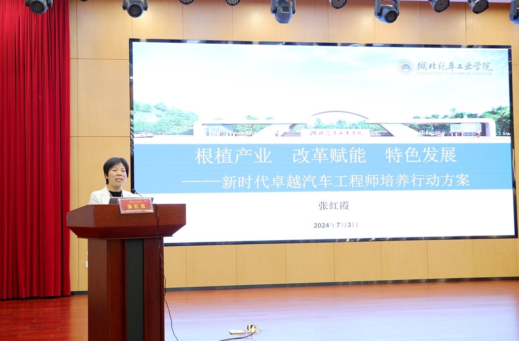 副校长张红霞作了《根植产业改革赋能特色发展》专题报告,深入解读了《湖北汽车工业学院新时代卓越汽车工程师培养行动实施方案(2024-2026)》、《湖北汽车工业学院本科专业结构优化与发展规划(2024-2035年)》、《湖北汽车工业学院本科教育质量保障体系》等三个本科教育教学纲领性文件,为学校未来培养卓越汽车工程师人才构建了美好“蓝图”和详细“施工图”。