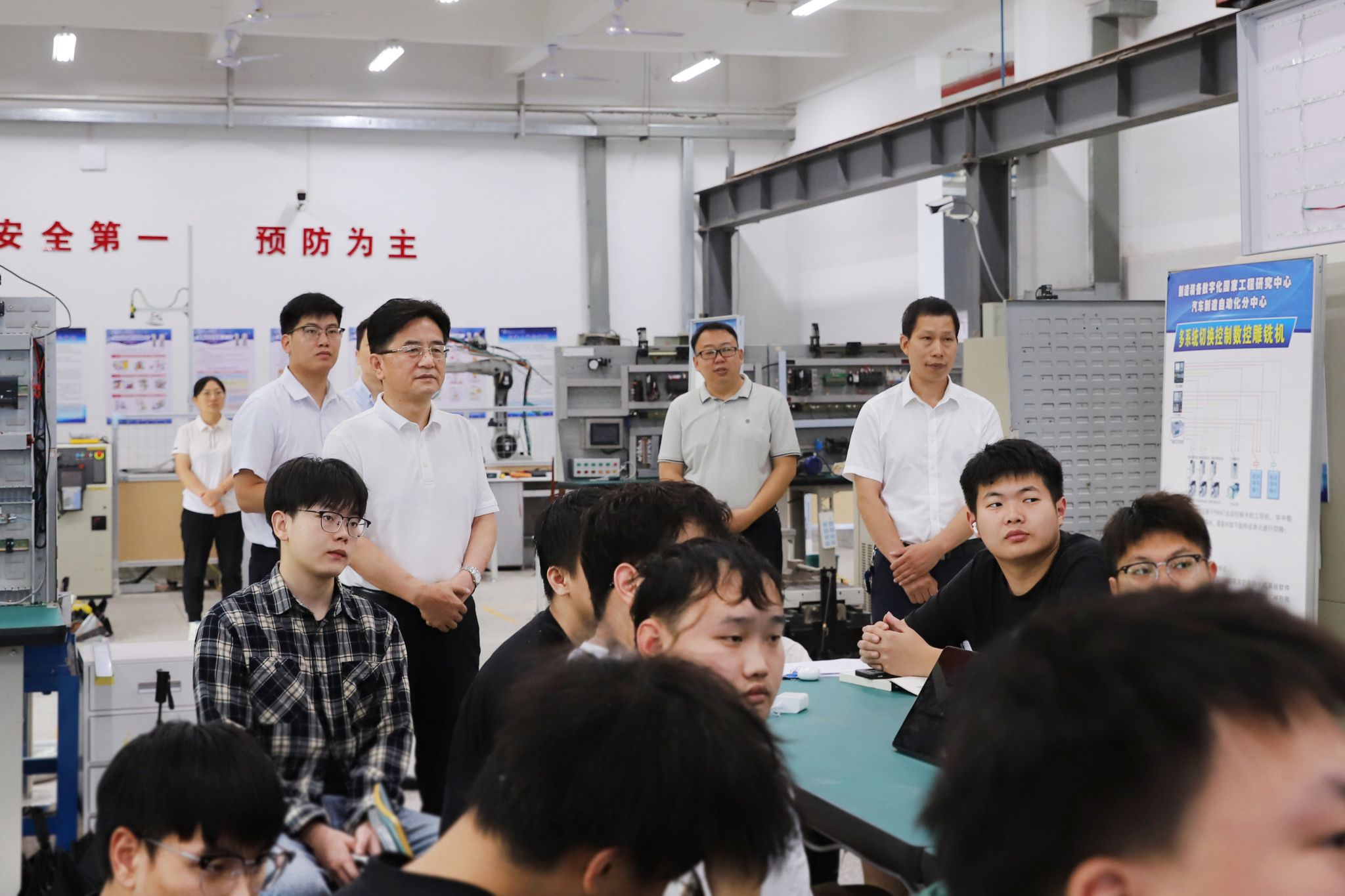 在电气与信息工程学院制造装备数字化国家工程研究中心汽车制造自动化分中心和汽车电子电器开发与检测实验室,张文学指出,学校二级单位要秉承育人为本、立德树人的大格局大情怀,进一步提升政治站位,弘扬好昂扬向上的精气神,保持好求真务实的工作作风,坚持持续奋进、劳逸结合,做好暑期各项工作。二级单位领导班子要抓准工作重点和难点、堵点和痛点,明确任务要求,把控时间节奏,确保工作完成得有质量有效率;要勇于担当,想方设法激发起每一位教职工岗位建功的澎湃动力,发挥出每一位教职工无私奉献的积极作用,学校的高质量发展离不开每一位教职工的倾力付出。
