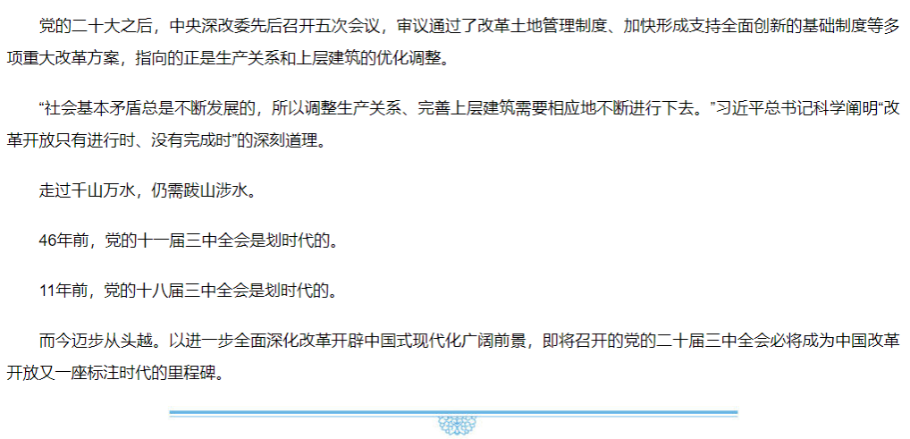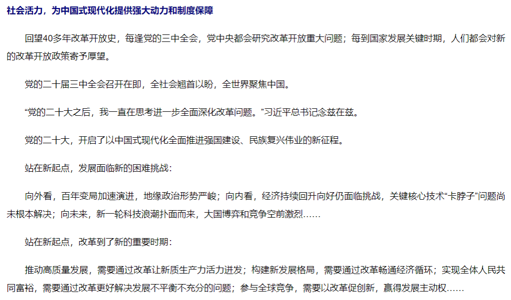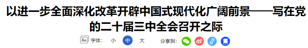 【学习进行时】以进一步全面深化改革开辟中国式现代化广阔前景——写在党的二十届三中全会召开之际
