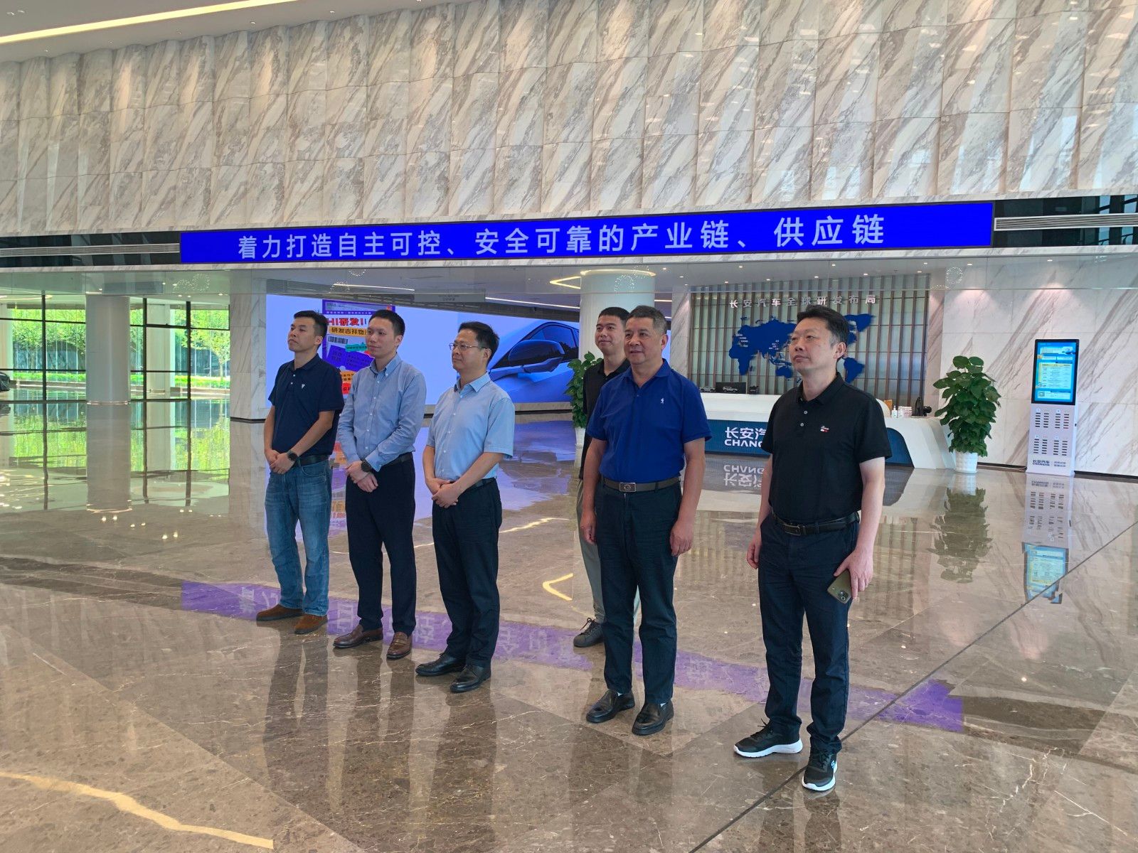 在长安汽车股份有限公司,陈建平一行在长安汽车人力资源部副总经理王岽等的陪同下,参观了长安汽车全球研发中心,深入调研了长安汽车在技术研发、人工智能、新能源等方面所取得的成果,并就校企科研合作、学生实习实训、人才需求等事项与该公司进行了深入探讨和交流。