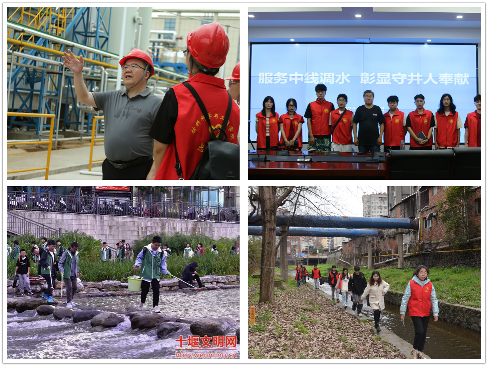 2024年,是南水北调中线工程通水十周年。学校依托社会实践项目,组织“碧水丹心”“守一湾碧水,护一河清波”等多支社会实践团队前往丹江口市作生态调研,实地了解守水护水工作,挖掘南水北调中线工程故事,体悟移民精神。2024年至今,学校绿色使者协会联合张湾区红卫街道、十堰沧浪绿道环保服务中心等单位先后开展守水护水活动24次,人均志愿服务时长达9小时。