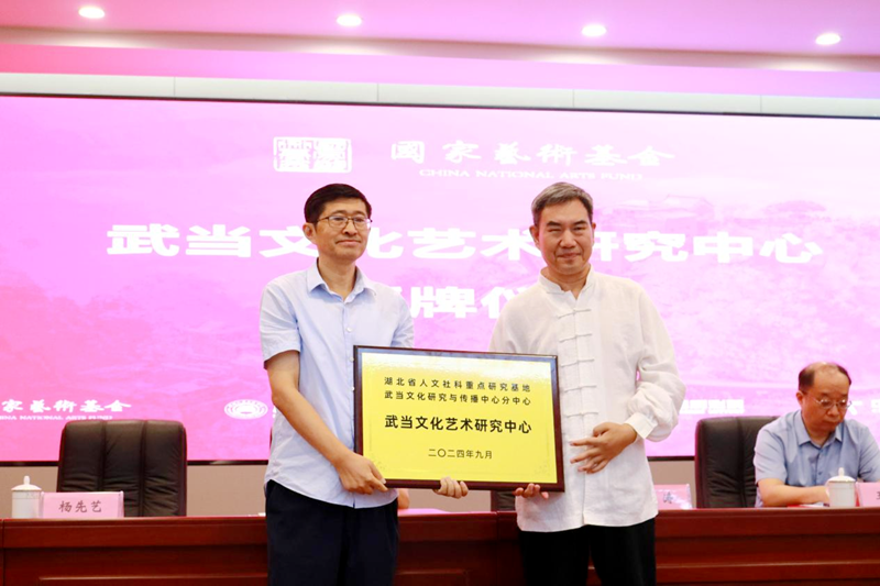 开班式上还举行了“武当文化艺术研究中心”授牌仪式。项目负责人、艺术与设计学院院长杨先艺介绍了项目主要情况,并对培训过程提出了具体要求,对项目实施成效进行了展望。