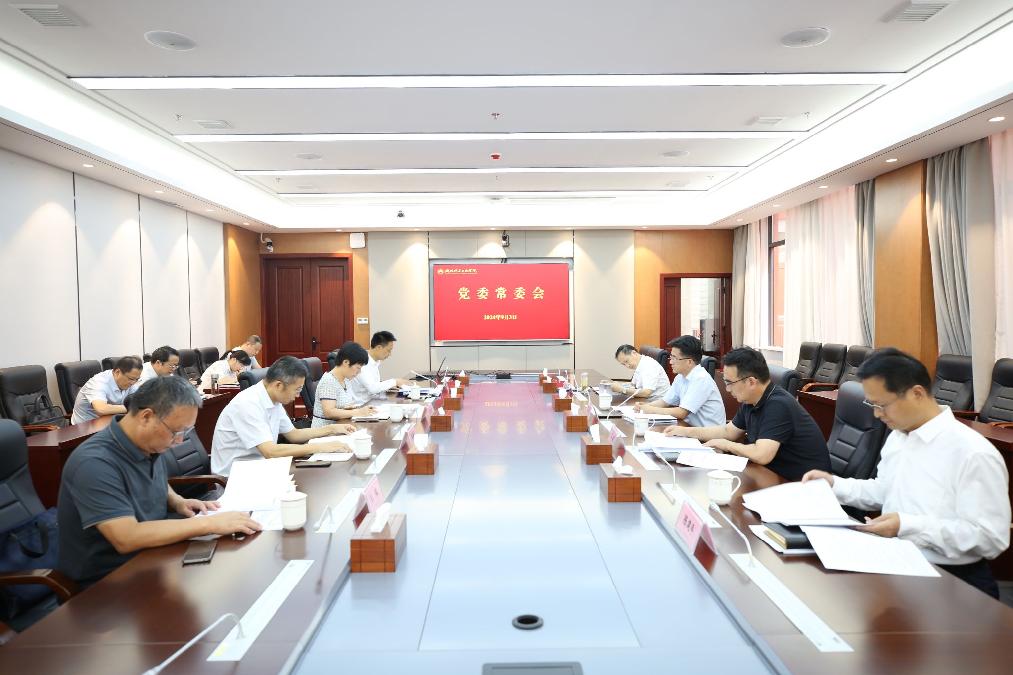 本网讯(文 刘俊/图 李一凡)9月3日,党委书记张文学在产教大楼三楼多功能会议室主持召开党委常委会,传达学习党的二十届三中全会、中共湖北省委十二届七次全体会议精神以及习近平总书记给十堰丹江口库区环保志愿者的重要回信精神、十堰市关于学习贯彻落实习近平总书记重要回信精神的有关文件精神,研究学校贯彻落实意见。