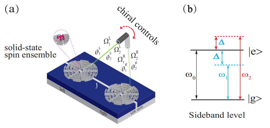 手性,是由于空间对称性破缺而引起一类奇特的物理现象,近年来在量子信息领域的研究和应用尤为重要。此项研究工作利用表面声学波量子器件耦合固态电子自旋构建杂化体系,通过激光调控来实现双模Lipkin-Meshkov-Glick模型的手性设计。这个新模型区别于传统的自旋模型,是对长程自旋-自旋量子模型的进一步发展和升级,为量子相变、自旋压缩、时间晶体等诸多量子领域的发展提供了新的研究契机。