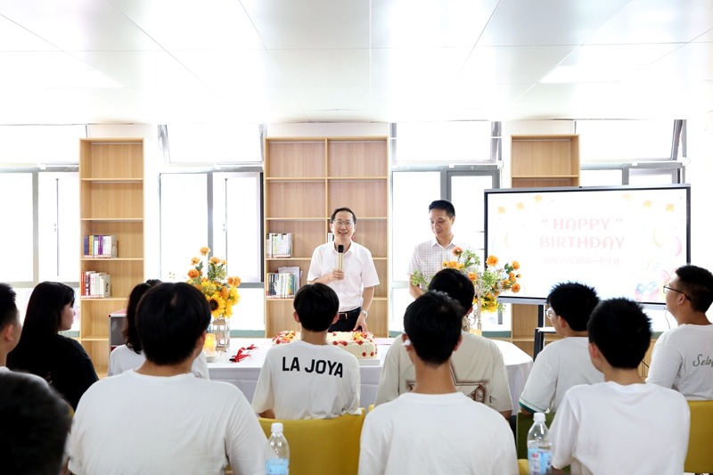 会上,李涛代表学校向小寿星们送上了诚挚的生日祝福,并对新生们表达了三“祝”:一是祝贺,祝贺新生度过第一个在校园里远离父母的生日,祝贺新生们顺利完成从高中到大学的人生转折,希望同学们在湖北汽车工业学院能够继续保持对生活的热爱、对知识的渴望、对未来的憧憬,勇敢地追求自己的梦想,继续实现“向上”转折!二是祝愿,祝愿新生们大学四年不虚度光阴,学有所成,书写属于自己的精彩生活。三是祝福,祝福新生们三天后度过一个圆满有趣的中秋佳节,并在之后的军训中练就强健体魄、磨炼坚韧毅力,坚定自信地投入大学生活中,积极进取、奋发向上,努力成长有理想、敢担当、能吃苦、肯奋斗的时代新人。